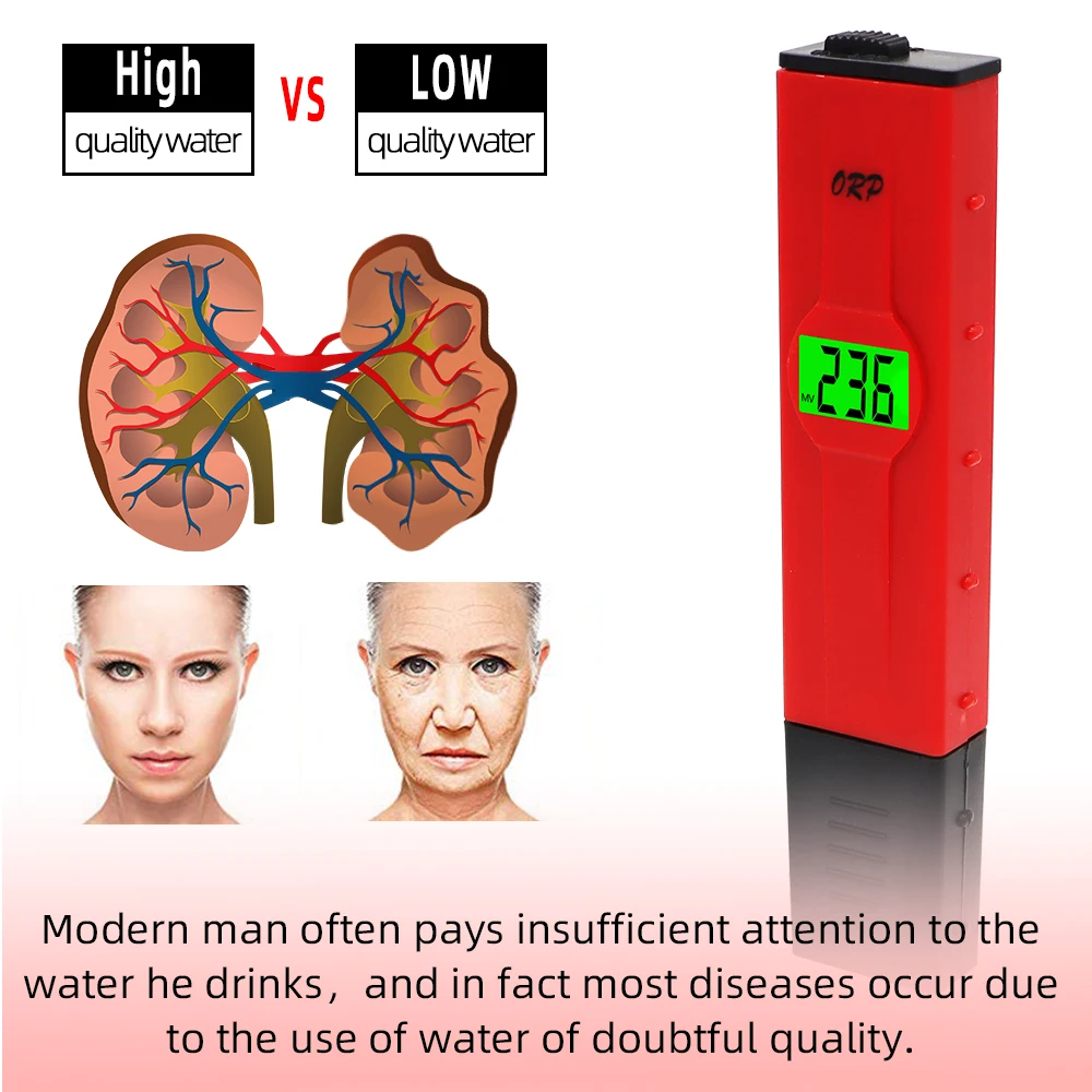 Medidor de ORP LCD, probador de cantidad de agua, tipo de pluma de retroiluminación, 0 ~ ± 1999mV, Detector Redox de ORP para acuicultura de piscinas