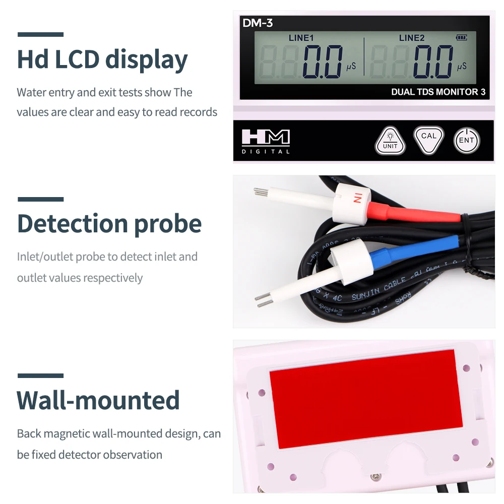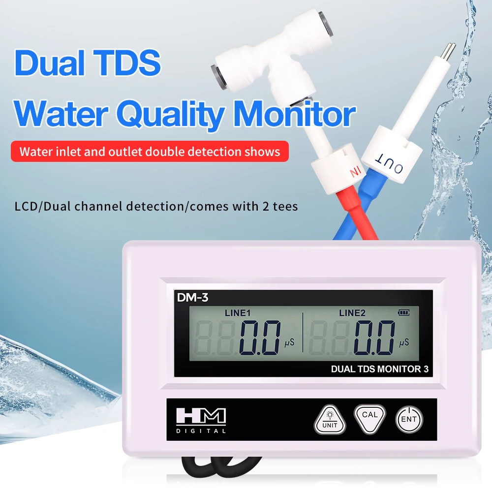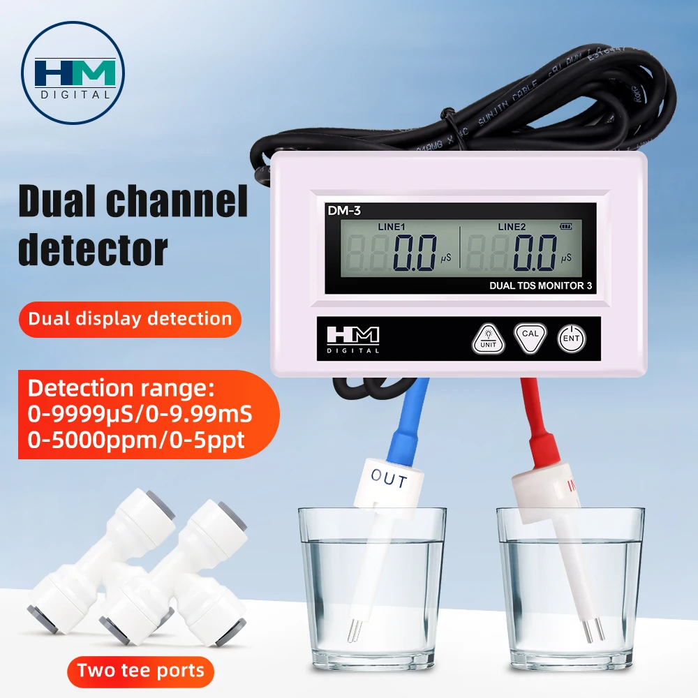 Probador Digital de calidad del agua en línea HM DM3, medidor LCD TDS, detección de PPM de doble canal, prueba de salida de entrada para laboratorio de piscinas