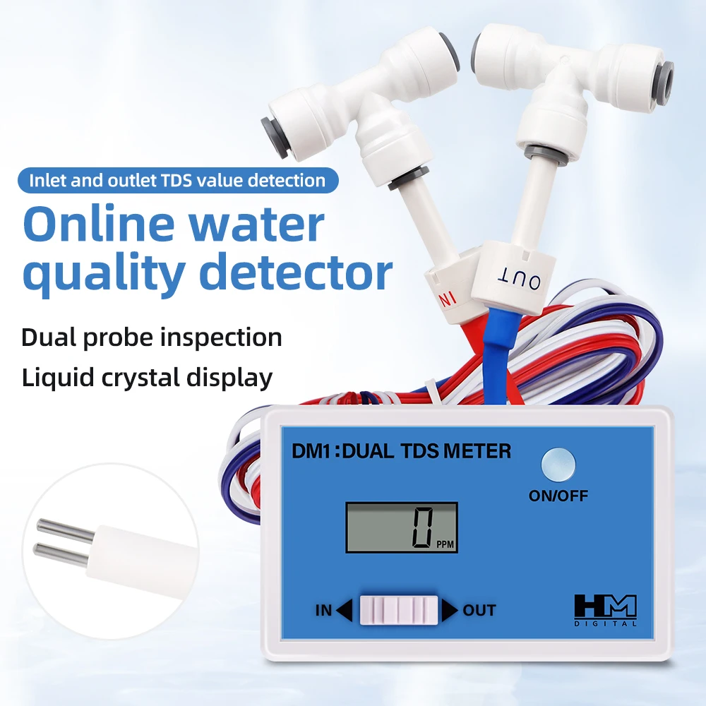 Probador digital de calidad del agua Sonda dual Detector TDS en línea Monitor de calidad del agua de entrada/salida para tanque de peces de agua del grifo