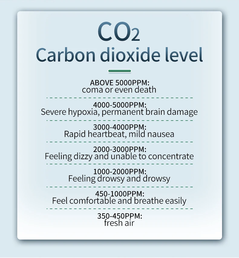 Rango de detección de CO2: 400 ~ 5000 PPM
