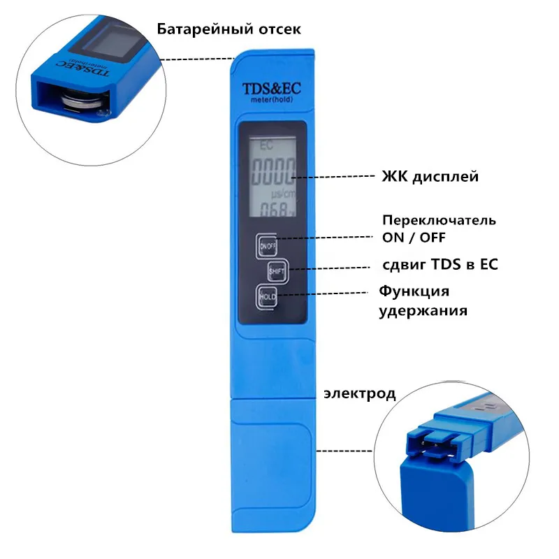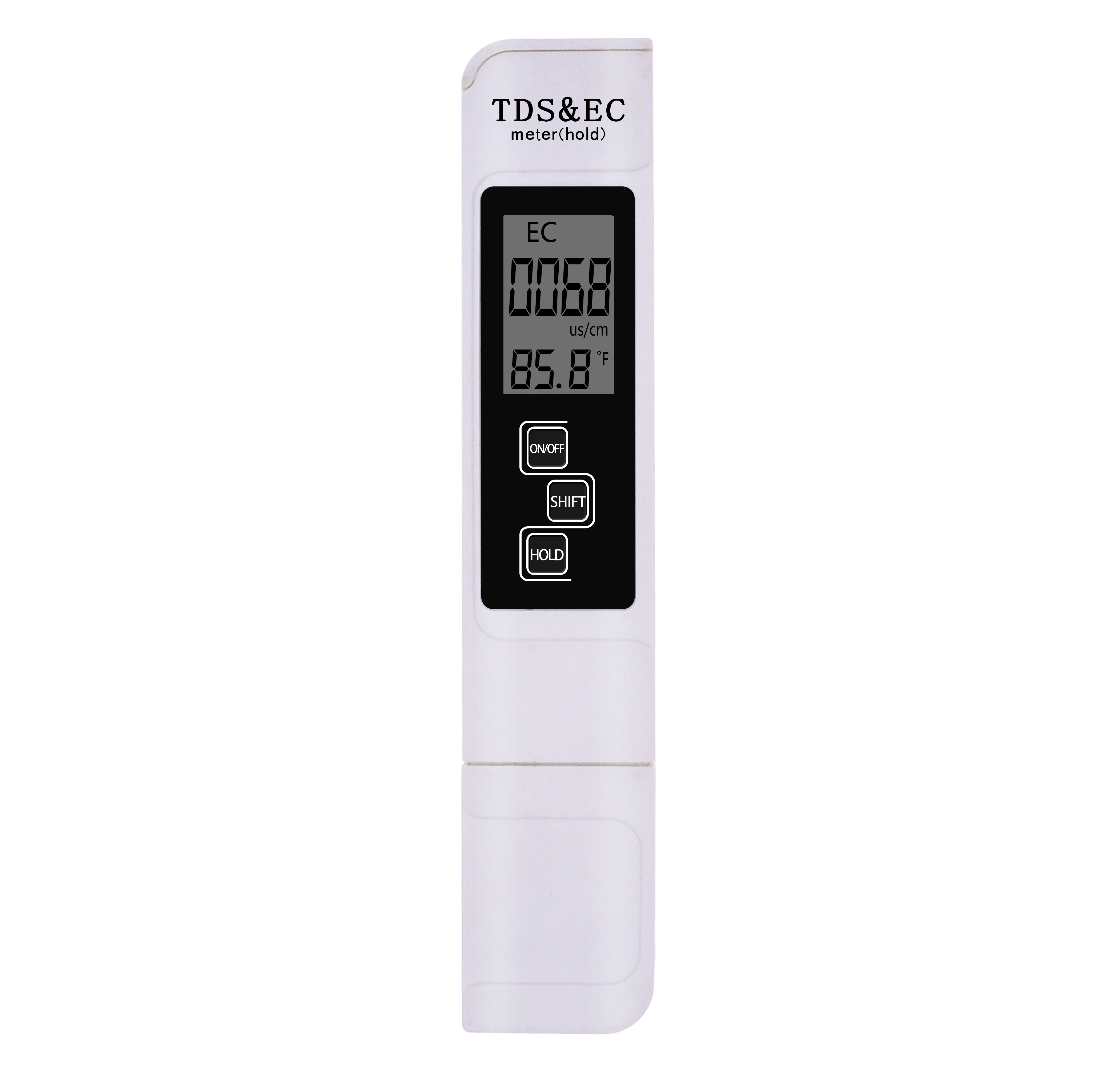 Características:Función de bloqueo: facilita la lectura y grabación, presione el botón HOLD y luego elimine de la solución de prueba.4 modos de visualización: Presione el botón SHIFT: TDS-ppm y °C, EC-μs/cm y °C, TDS-ppm y °F, EC-μs/cm y °F.