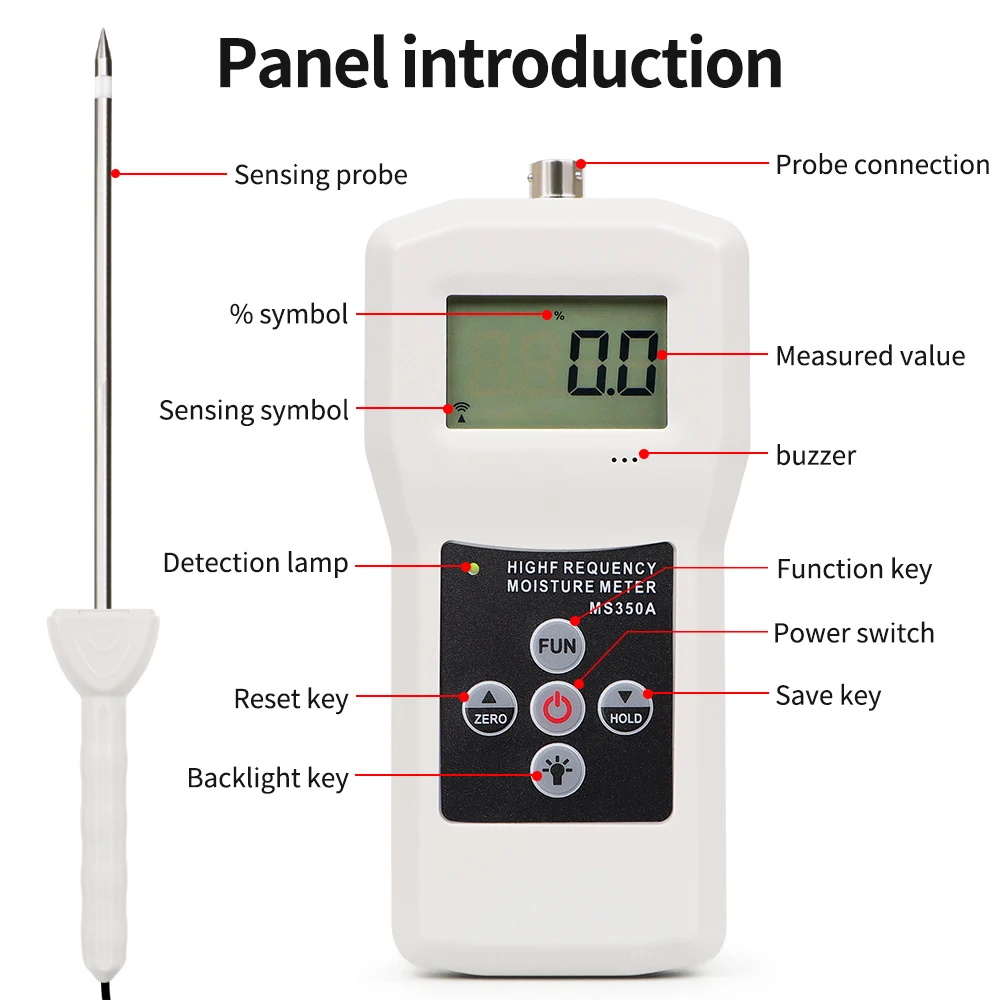 MS350 MS350A probador de humedad LCD medidor de humedad de alta frecuencia analizador de contenido de humedad para polvo químico de arena plateada