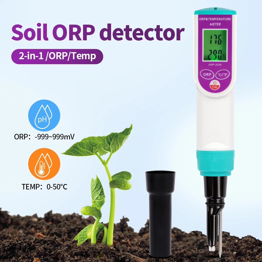 Probador ORP de suelo de alta precisión, Detector de suelo Digital 2 en 1, medidor de temperatura ORP con retroiluminación para invernadero de plantas y flores