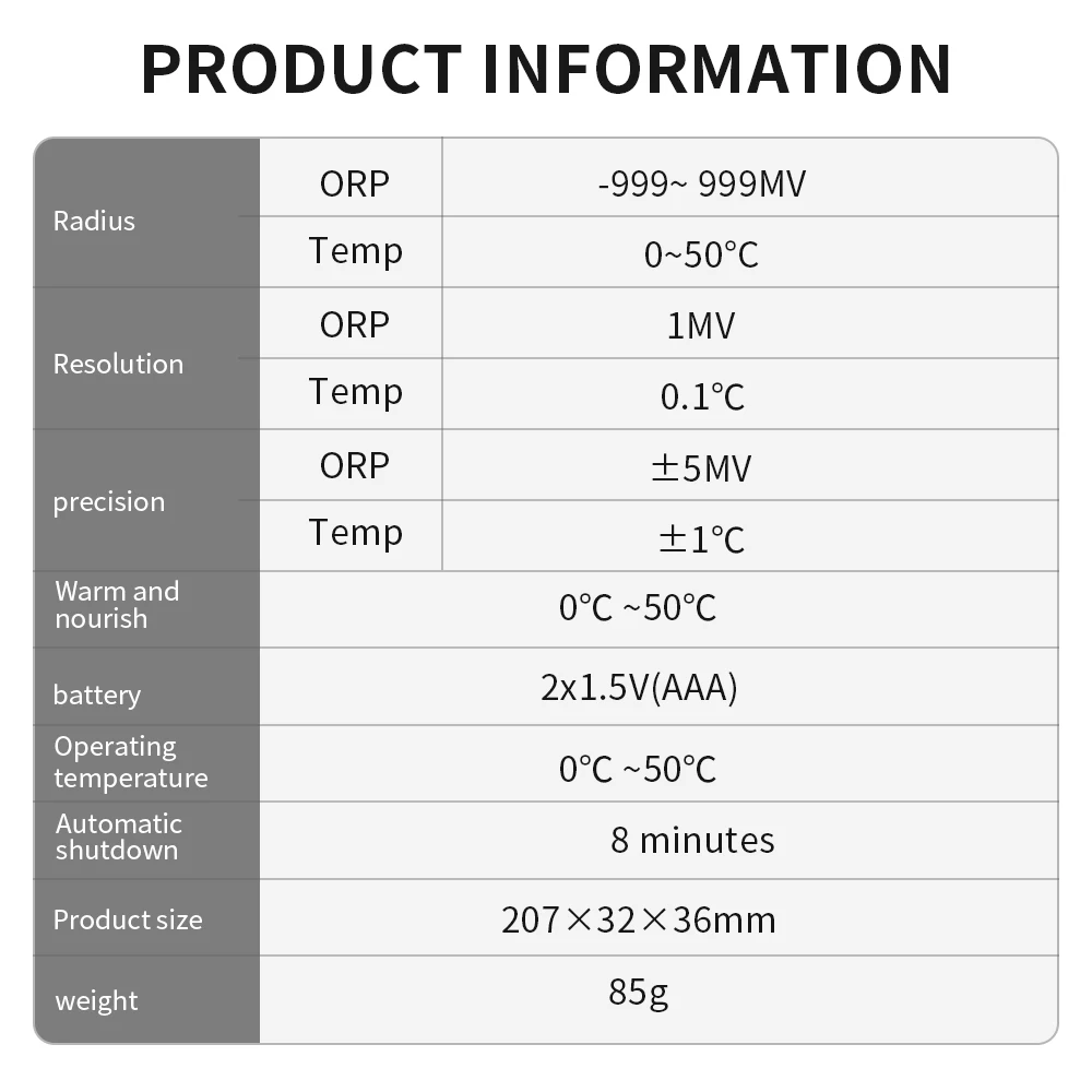 Raio ORP: -999~999MV