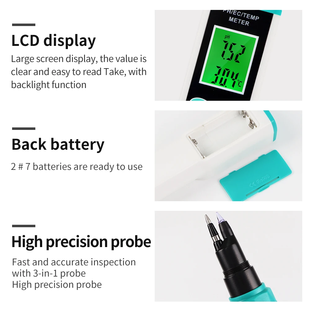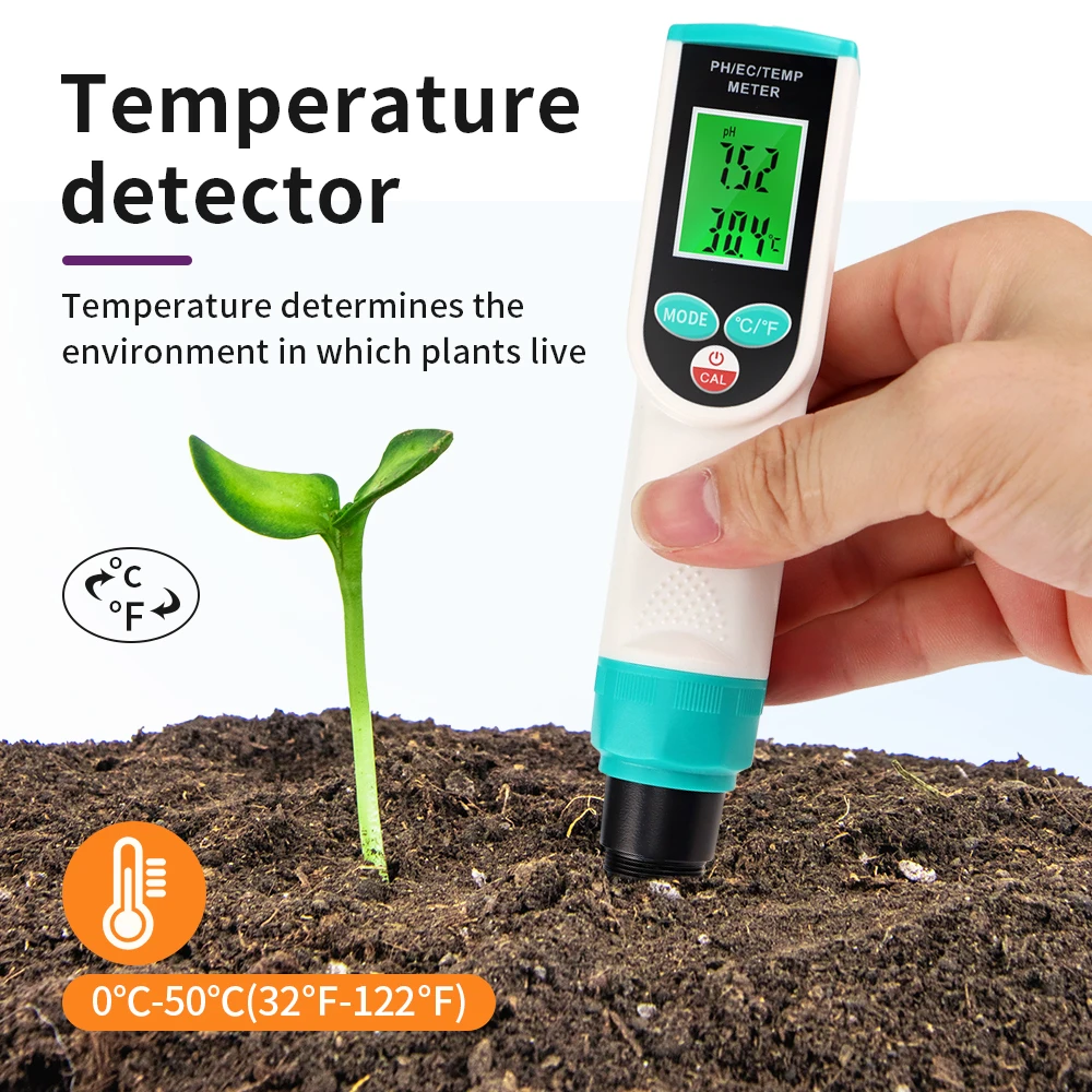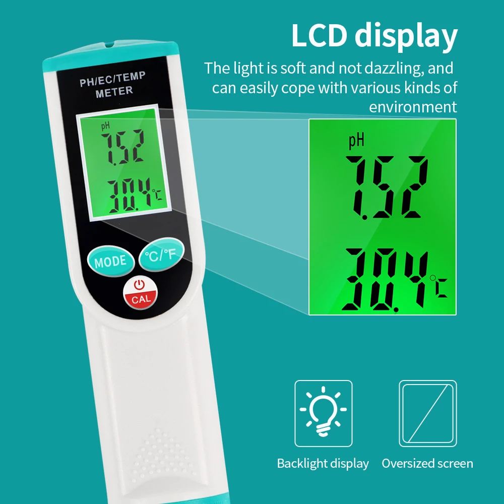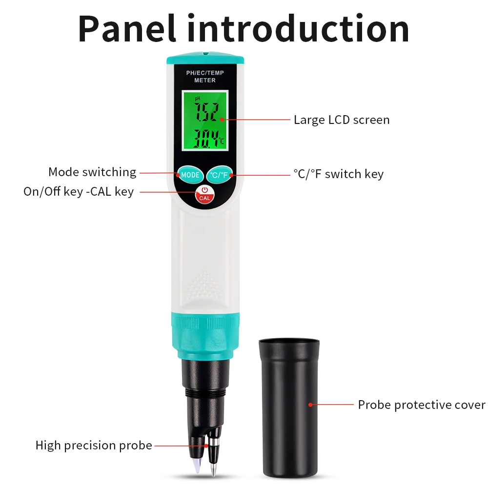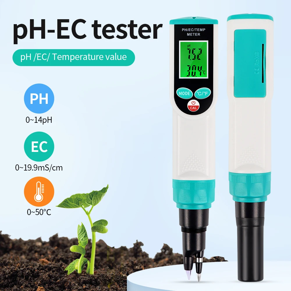 Probador de PH portátil para alimentos y suelos, medidor de temperatura EC de PH multifunción, medidor de PH Digital LCD, Detector de EC para carne, queso, masa, agua