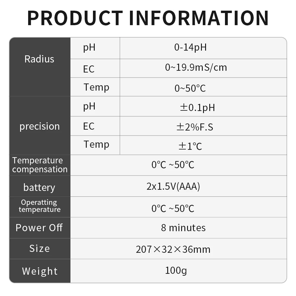 -Compensación automática de temperatura: pH/EC: 0~50°C
