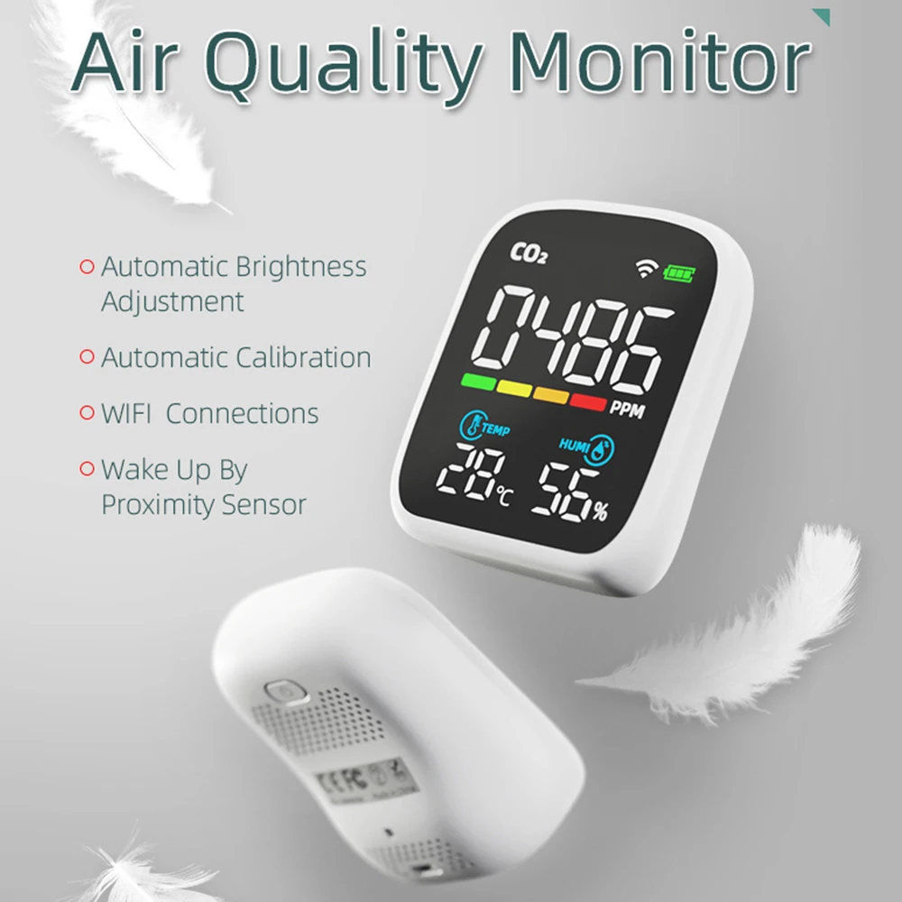 Probador de calidad del aire WIFI portátil, Control por aplicación, analizador de contaminación del aire CO2, PM2.5, medidor de prueba de temperatura y humedad, Sensor infrarrojo