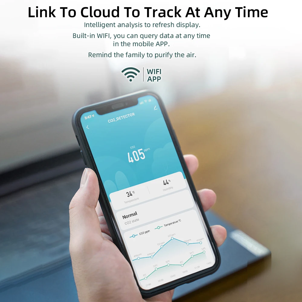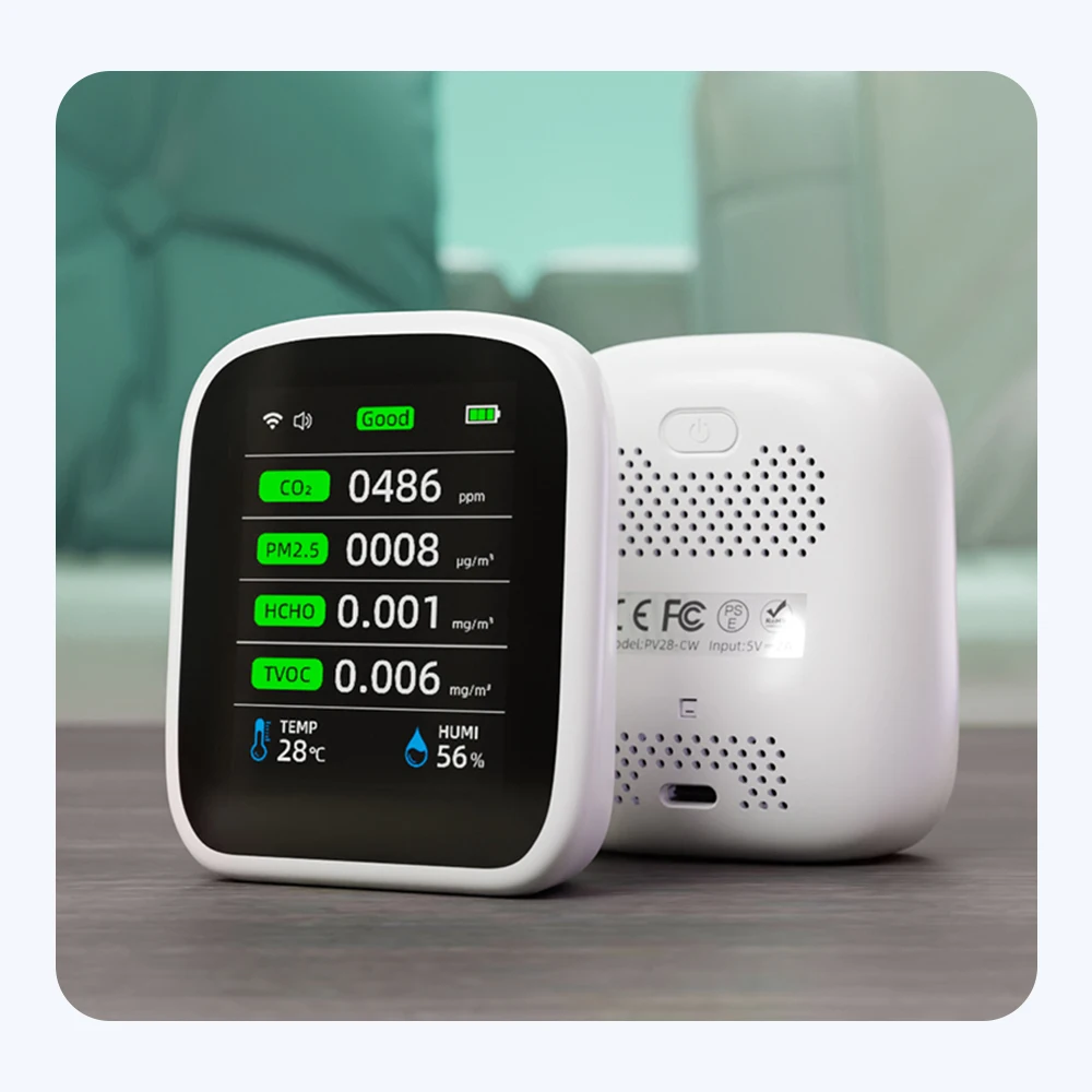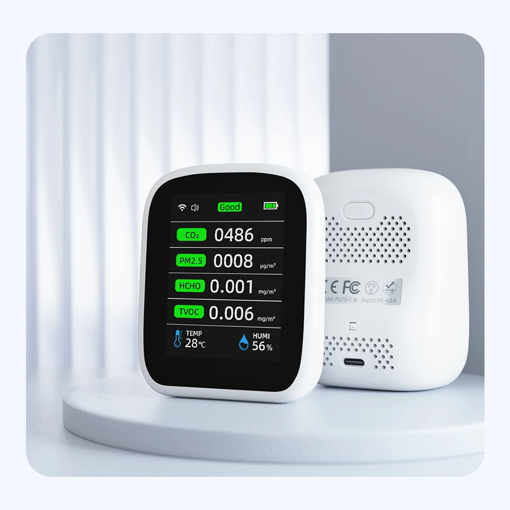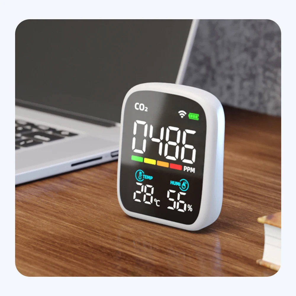 Este monitor portátil de calidad del aire adopta un sensor infrarrojo de dióxido de carbono NDIR y un sensor óptico de alta precisión, con un rendimiento estable y alta precisión de detección, lo que admite el monitoreo en tiempo real de la concentración de CO2, la temperatura y la humedad relativa en el aire.