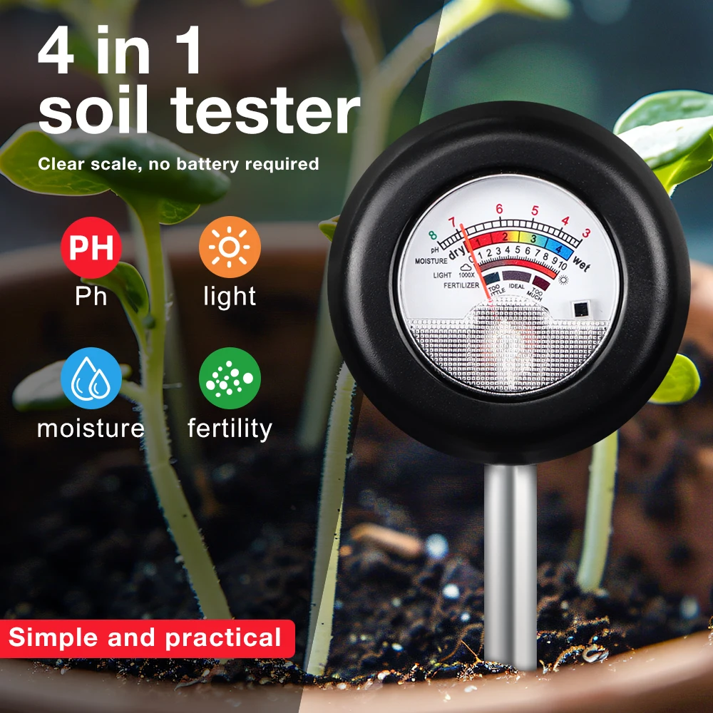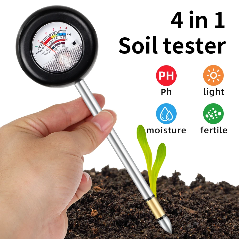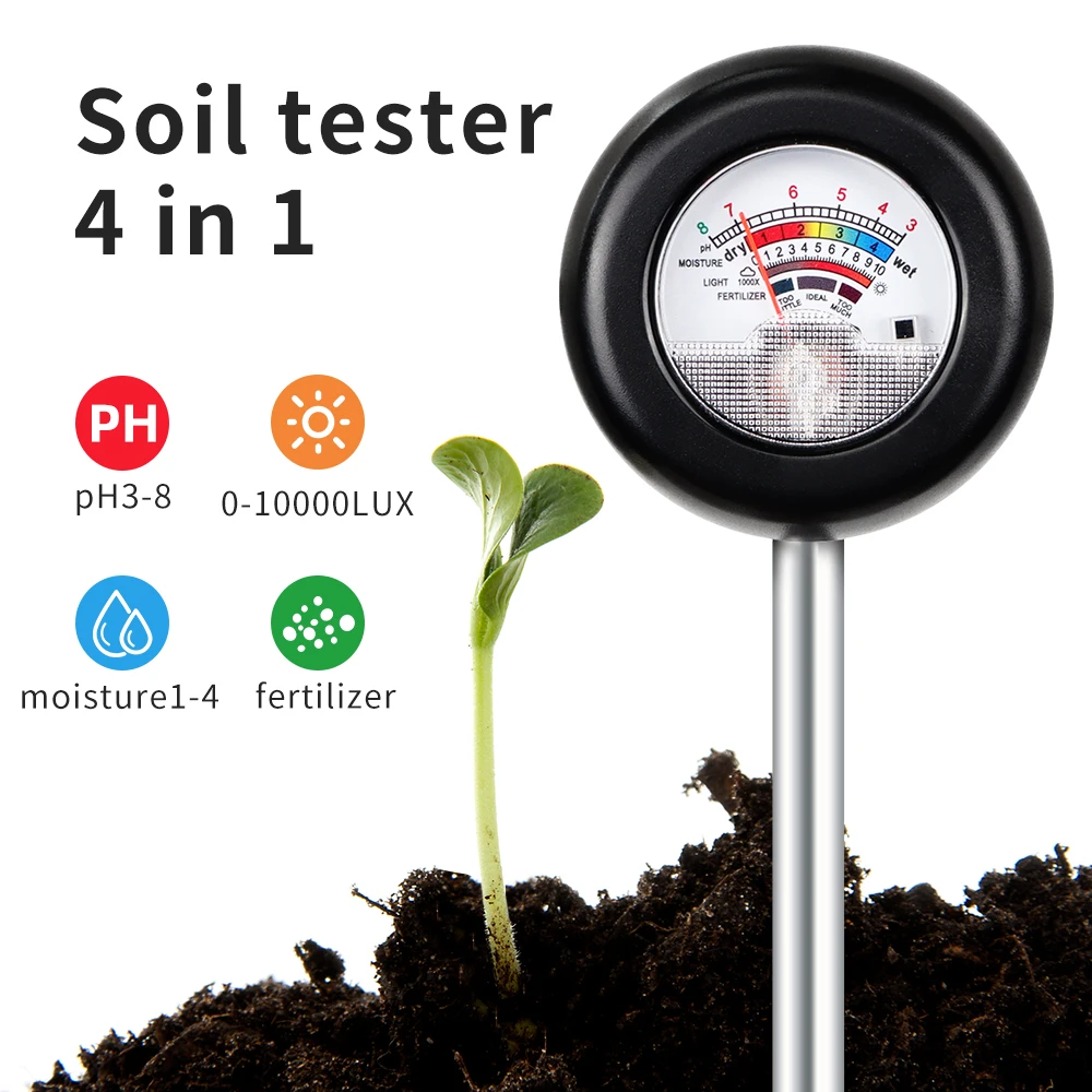 Probador de suelo portátil 4 en 1, multifunción, luz de PH, fertilidad, humedad, Detector de suelo, medidor de PH del suelo para plantación de jardín en maceta