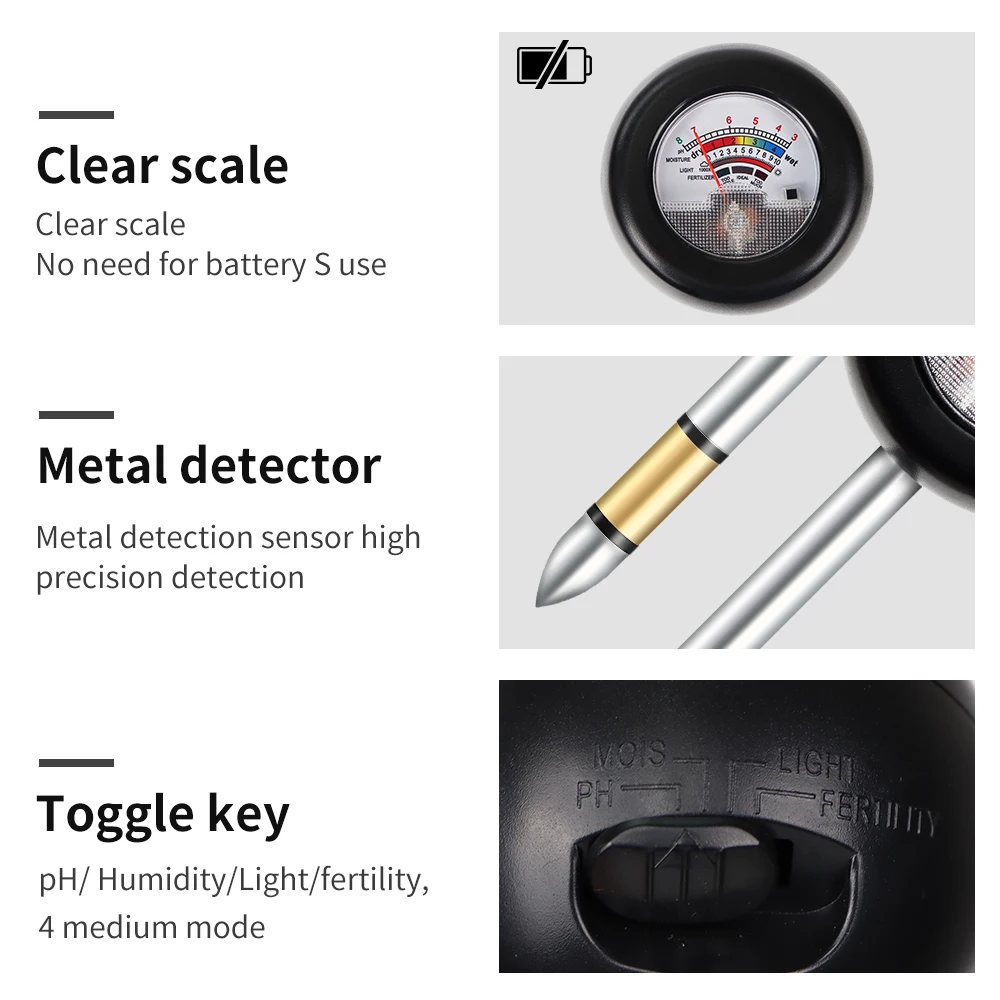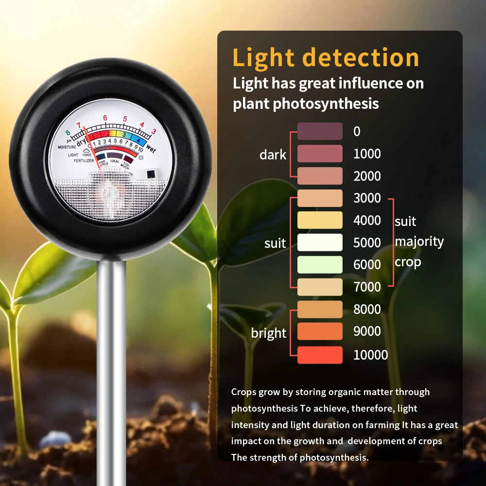 Diseño multifuncional: hecho de cobre resistente al desgaste y material ABS, con alta precisión, admite la detección de la luz, el valor de PH, la humedad y la fertilidad en el suelo. Una máquina es multiusos, más económica y respetuosa con el medio ambiente.