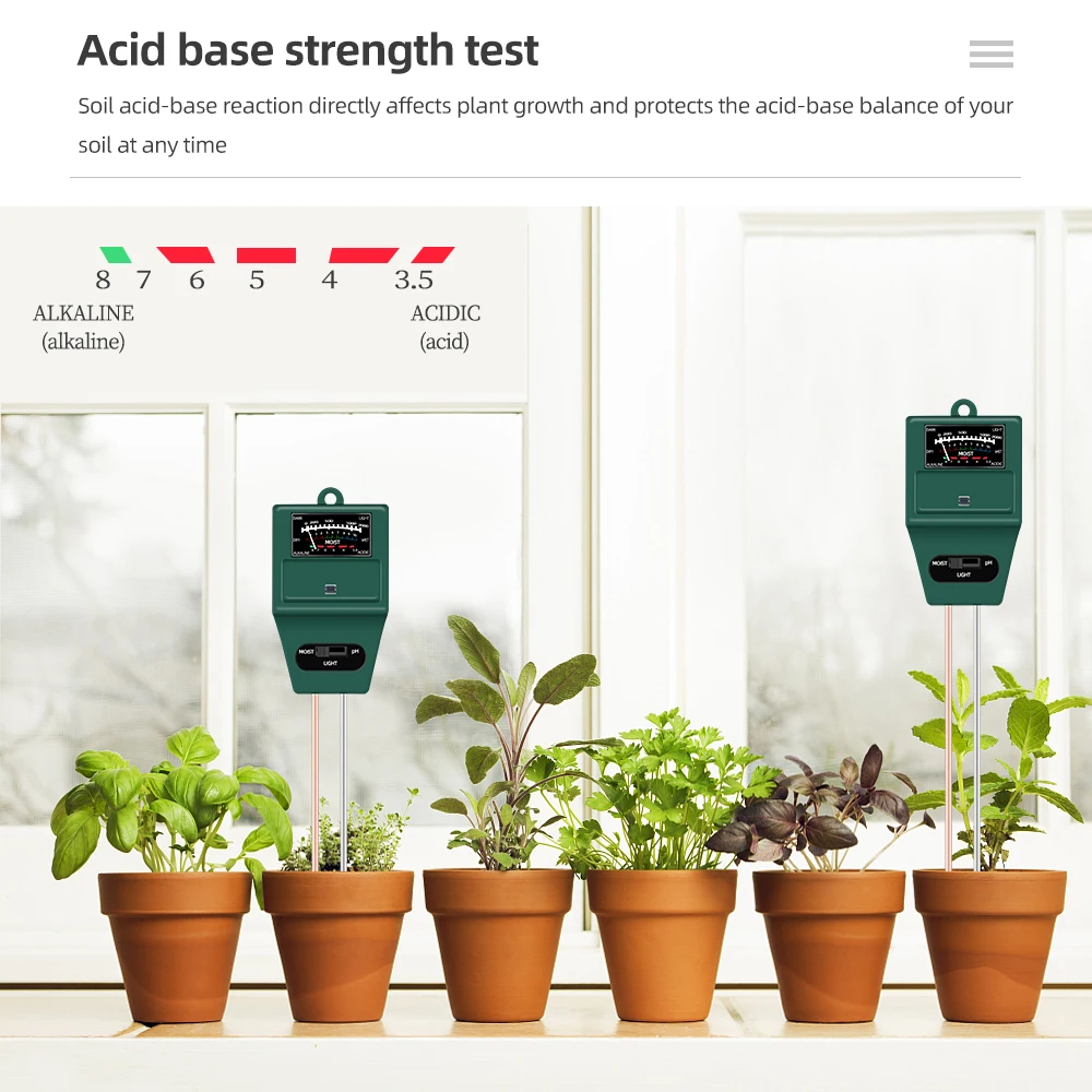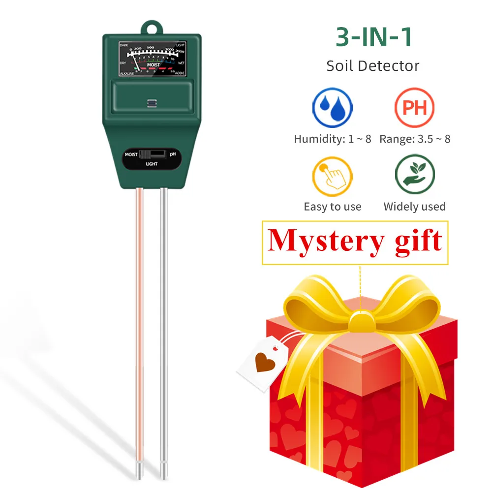 Probador de suelo 3 en 1, medidor de PH portátil de humedad del suelo, Detector de luz de humedad, Analizador de acidez de flores de plantas con Mini herramienta de jardín