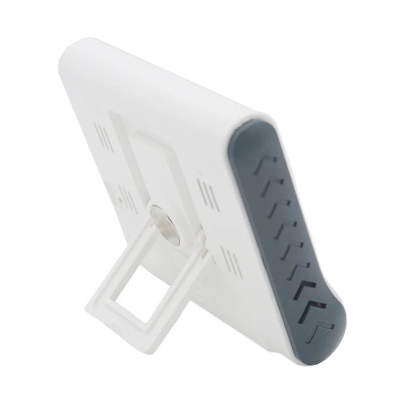 Con un sensor externo con cable que se puede colocar en el exterior de su casa para detectar la temperatura exterior, así como un sensor incorporado para medir simultáneamente la temperatura interior.