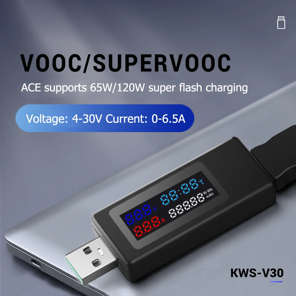 Probador USB 6 en 1, voltaje Digital de CC, potencia, pantalla IPS, medidor de capacidad de sincronización, adaptador Detector para medición de corriente KWS-V30