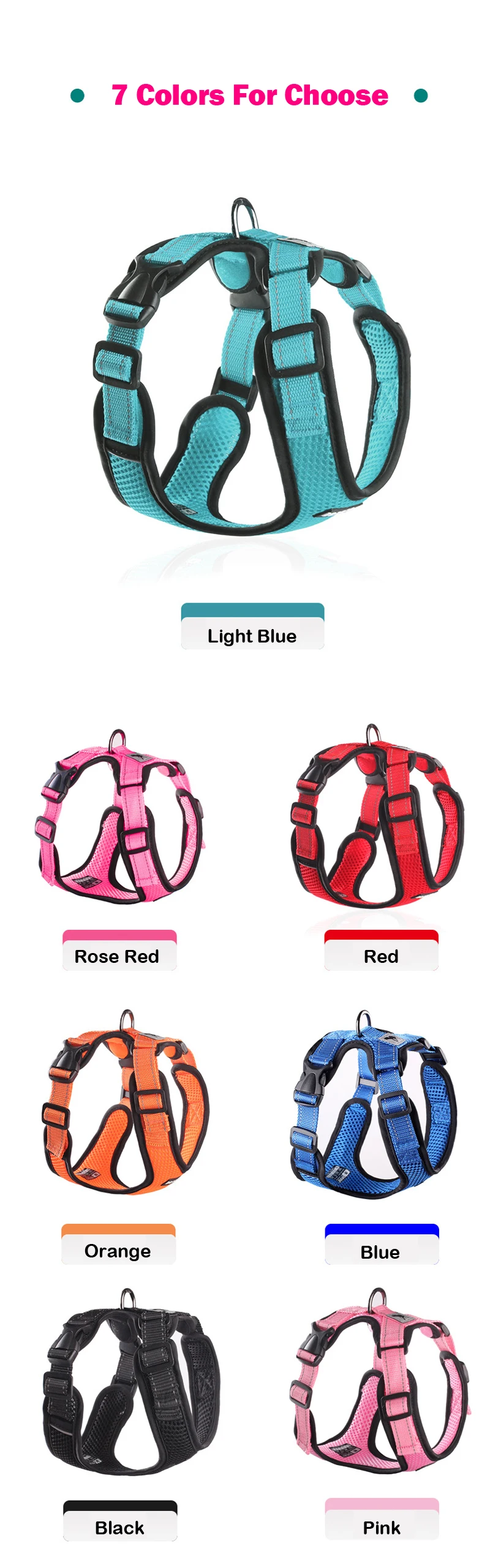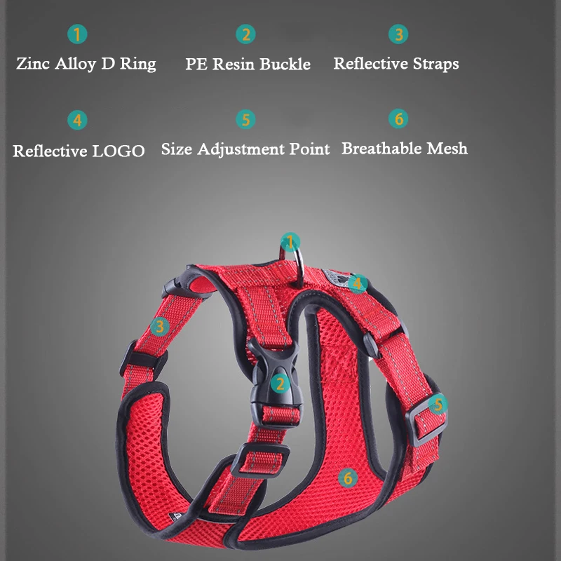 1. Breathable mesh fabric is suitable for the hot summer, help your pet Sweating easily.2. Easy to wear and take off and won't stick to pets.3. Non deformation of chest and back, which is very light and fit.4. Nylon webbing with 3M reflective material ensures great visibility at night.5. Handle on the back can control the movement of dog better and ensure the dog's safety on the car.6. The chest back is retractable to ensure that it is suitable for each size dog.Note:1. Warm Tip: Please be reminded that due lighting effects, monitor's brightness/contrast settings etc, there could be some slight differences in the color tone of the website's photo and the actual item.