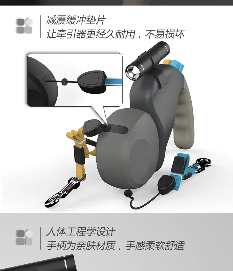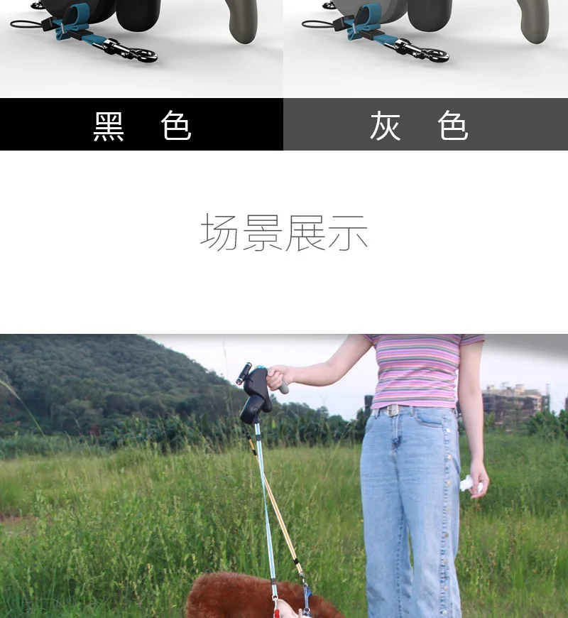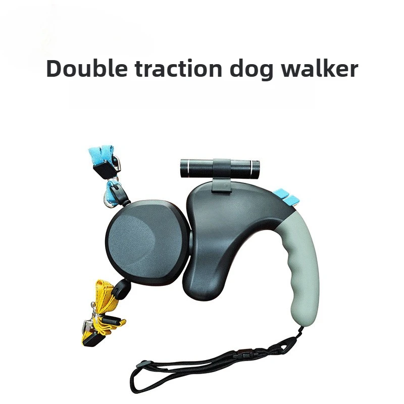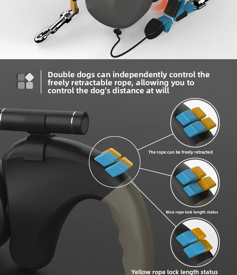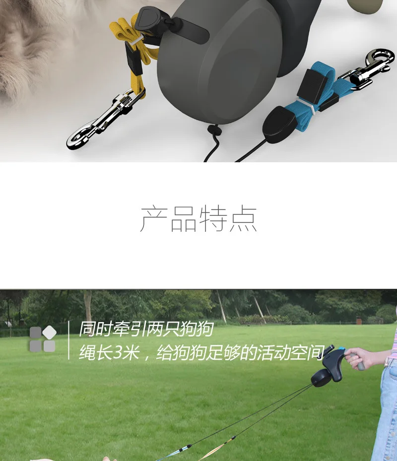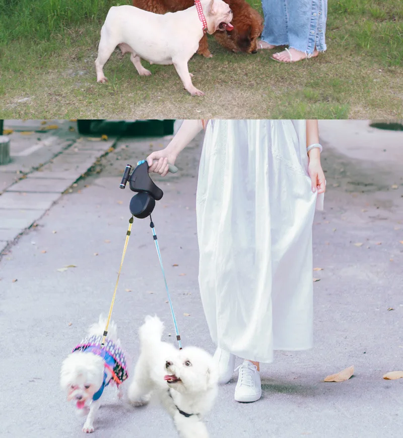 Productos para mascotas Andador para perros de doble punta Correa para perros al aire libre Uno para dos Retractor telescópico automático