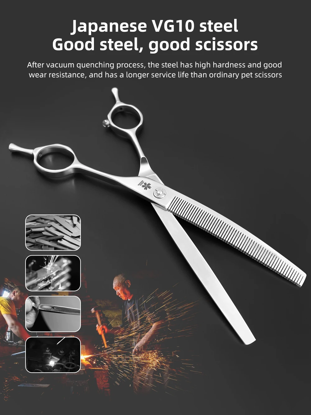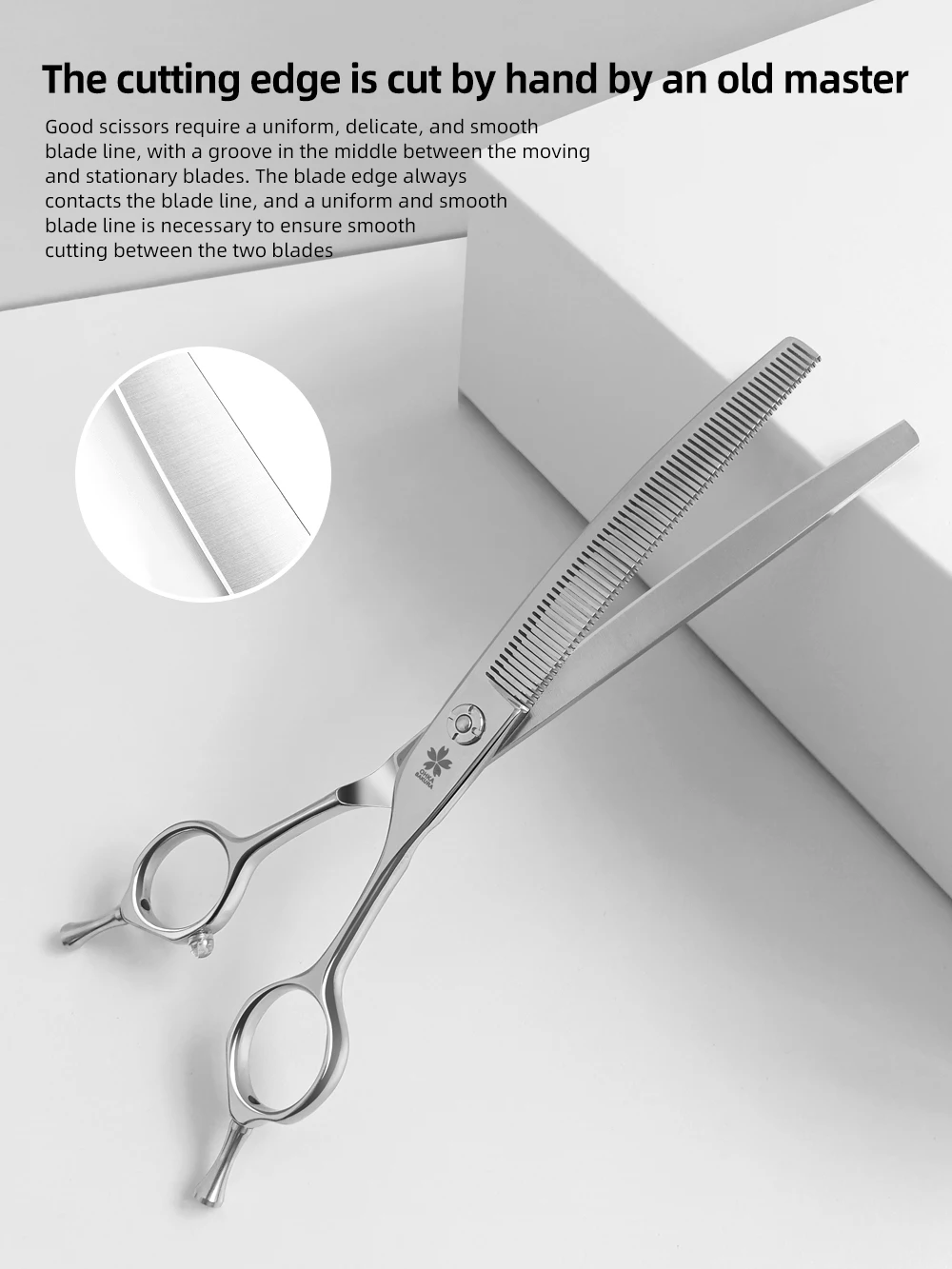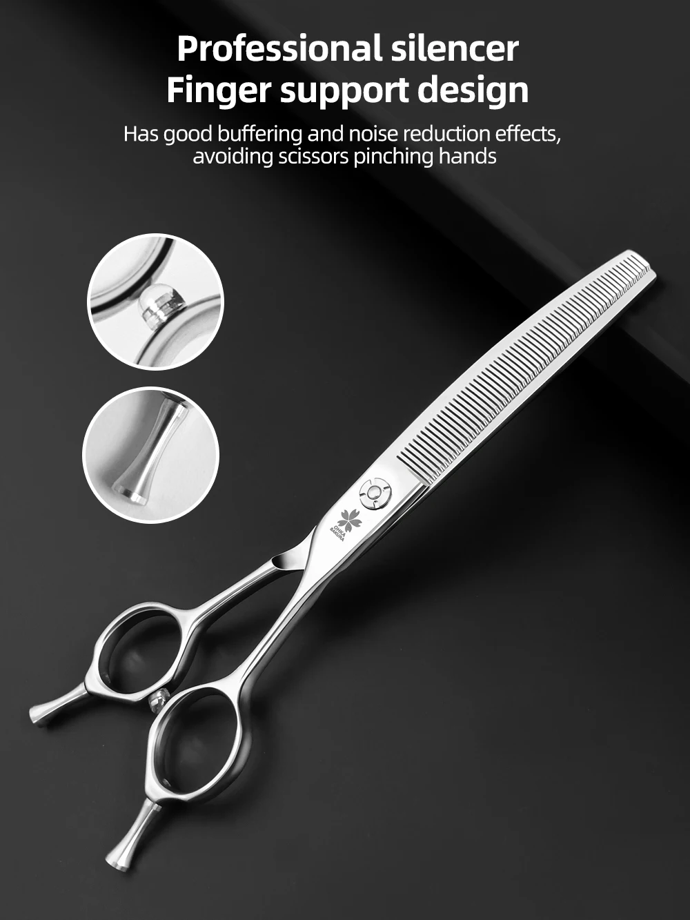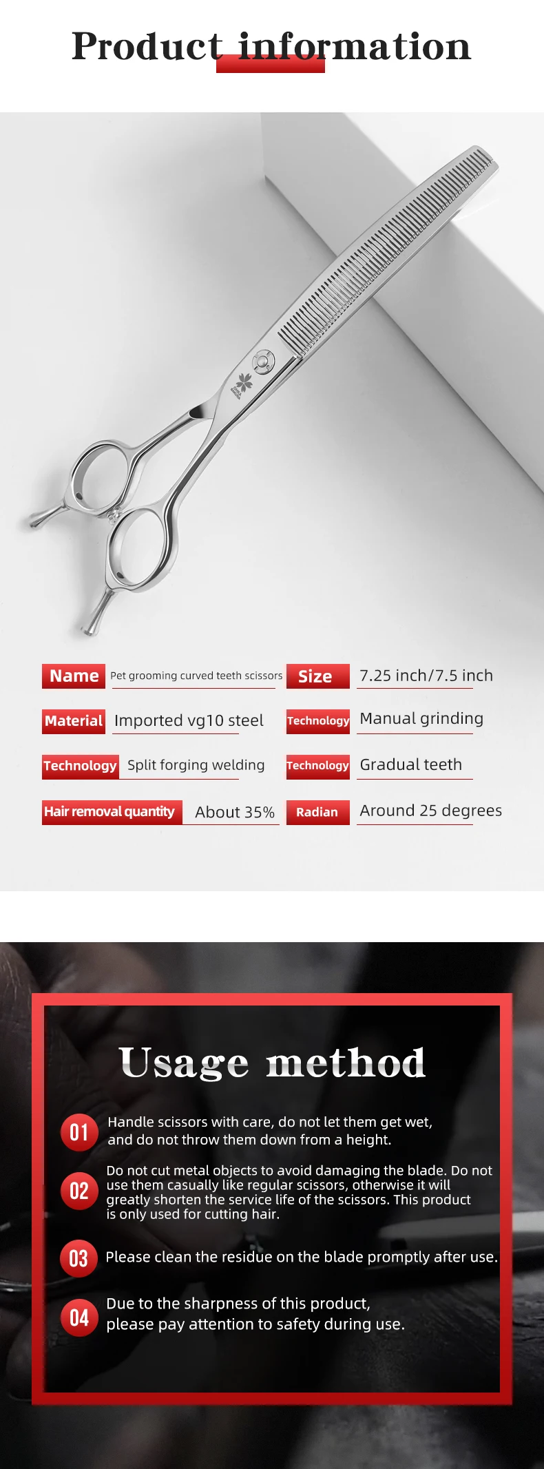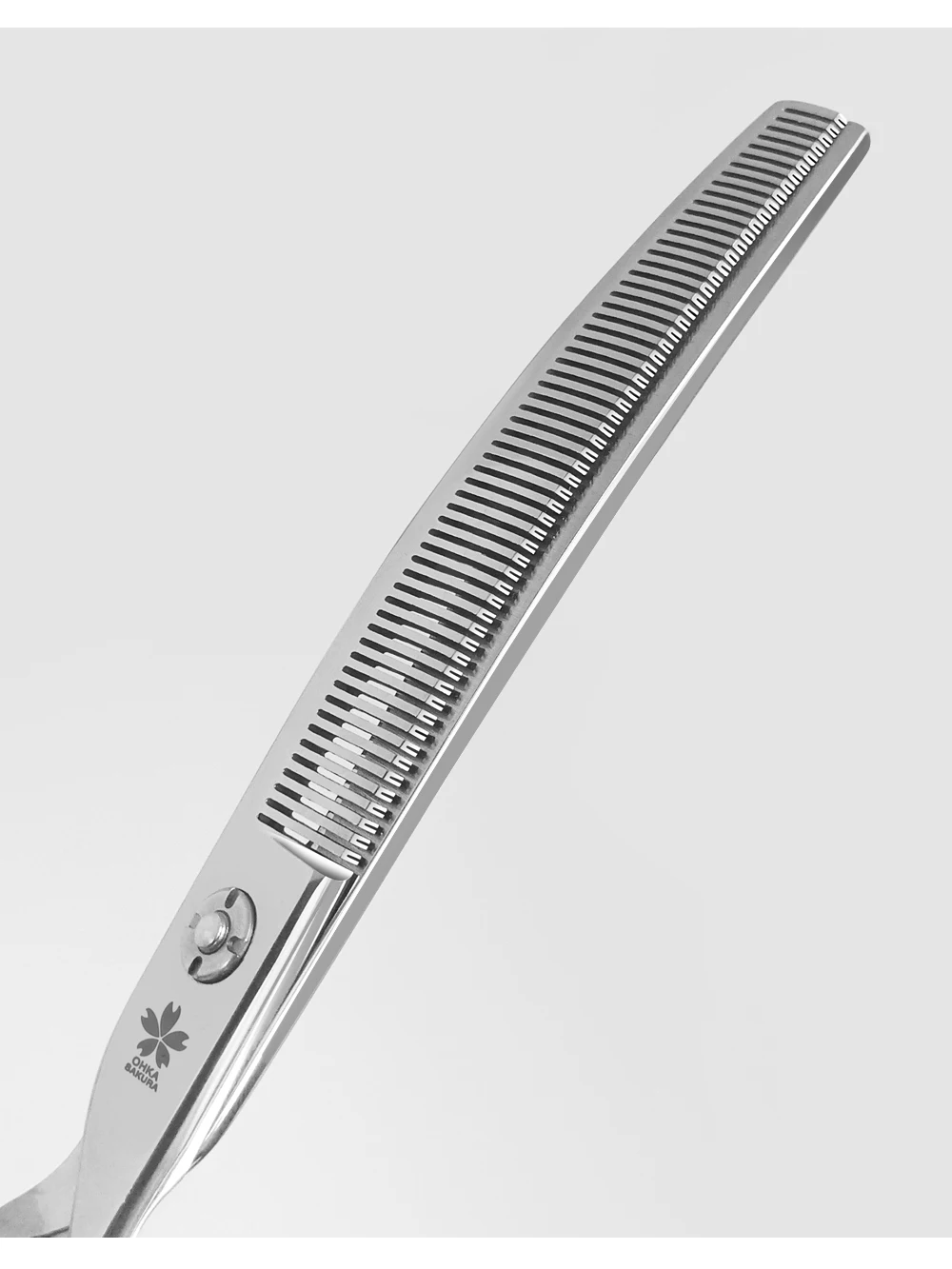 Con un diseño de adelgazamiento curvo, estas tijeras son perfectas para sesiones profesionales de cuidado de perros.