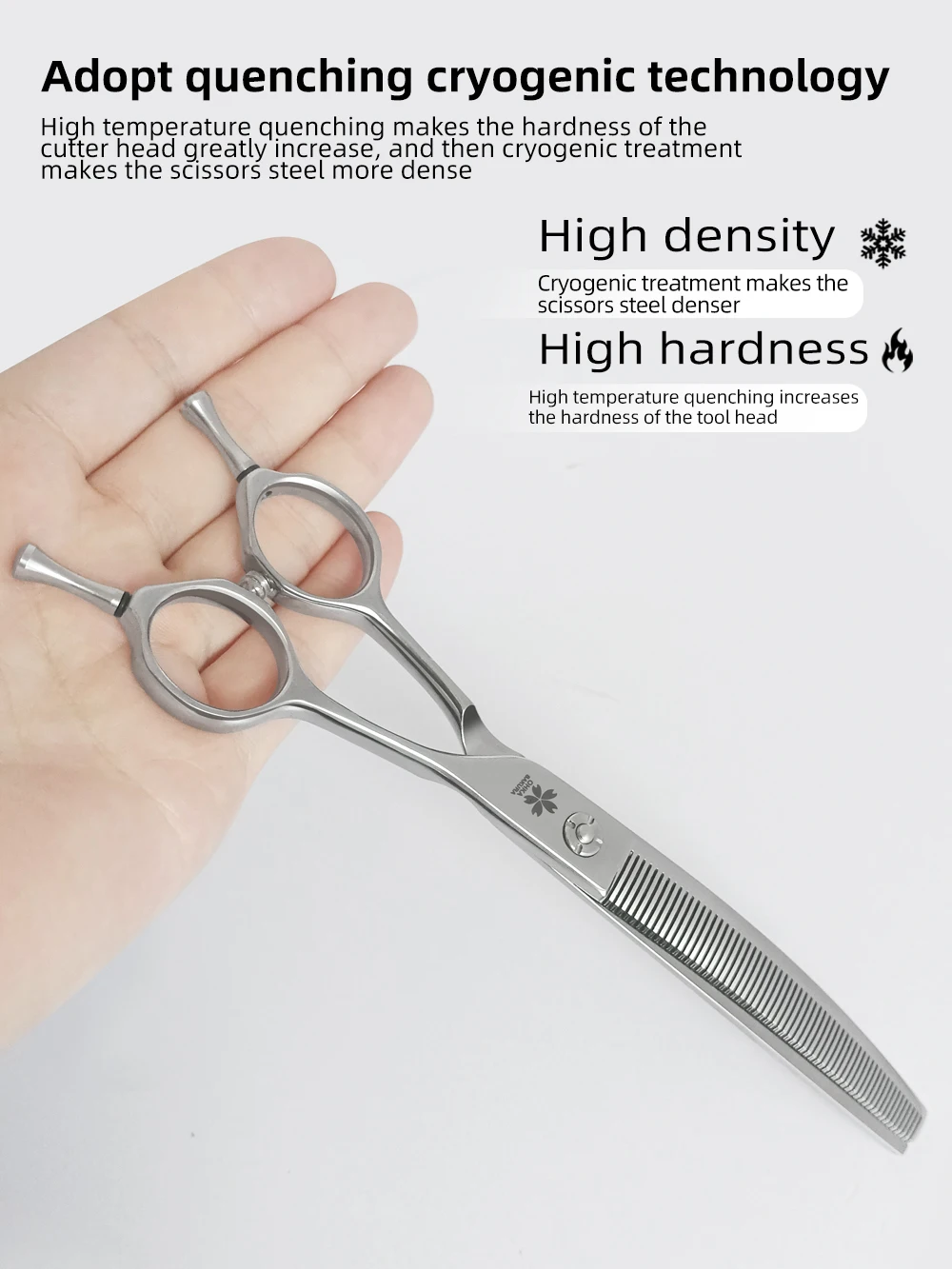 Fabricadas con acero inoxidable JP VG10 de primera calidad, estas tijeras ofrecen durabilidad y nitidez para un uso duradero.