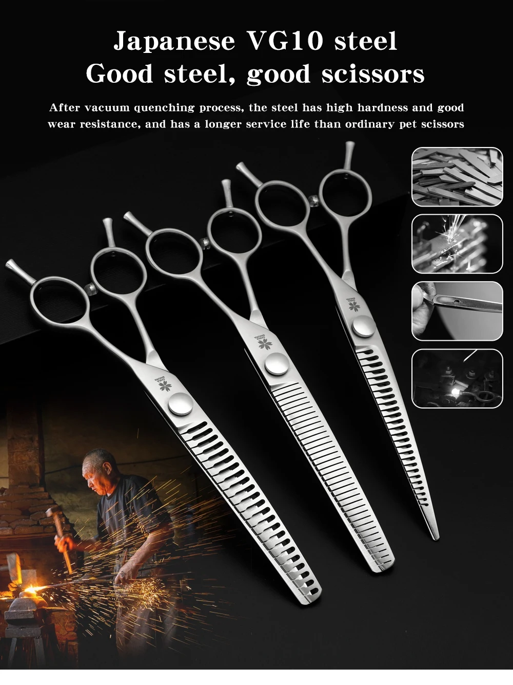 Professional Pet Grooming Shears Fishbone Teeth Curved Chunker Scissors 7.0 inch JP vg10 Groomer Tools 70% hair removal rate