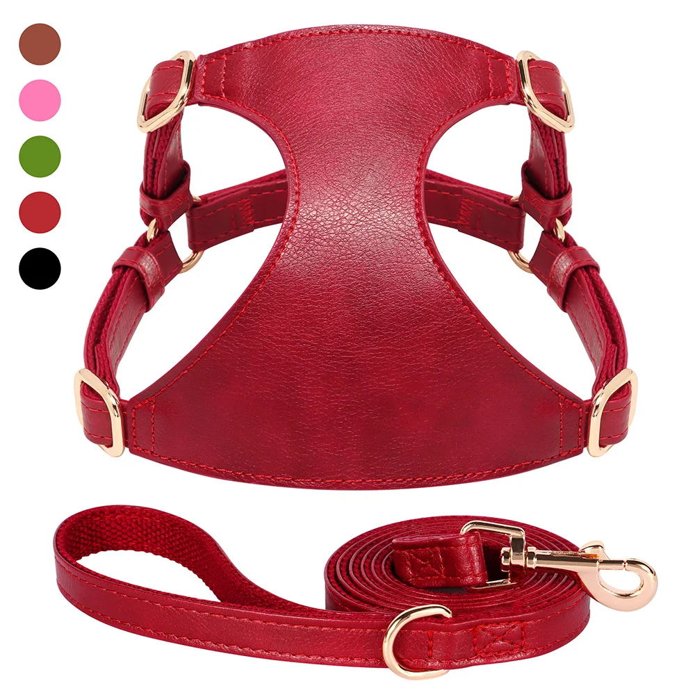 Conjunto de arnés y correa para cachorros, chaleco de cuero PU suave para perros y gatos, arnés con correa de plomo para perros pequeños y medianos, gatos, ChihuahuaMaterial: cuero PU