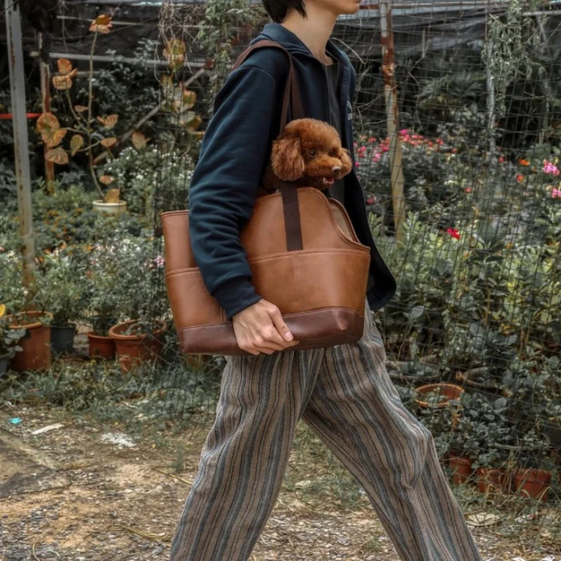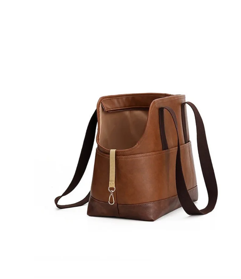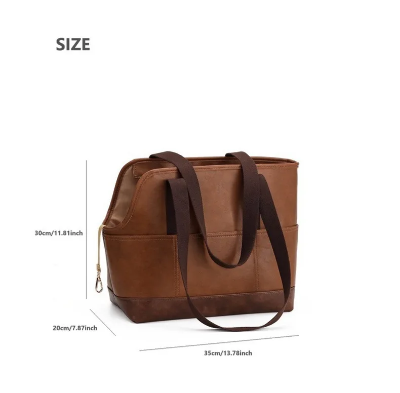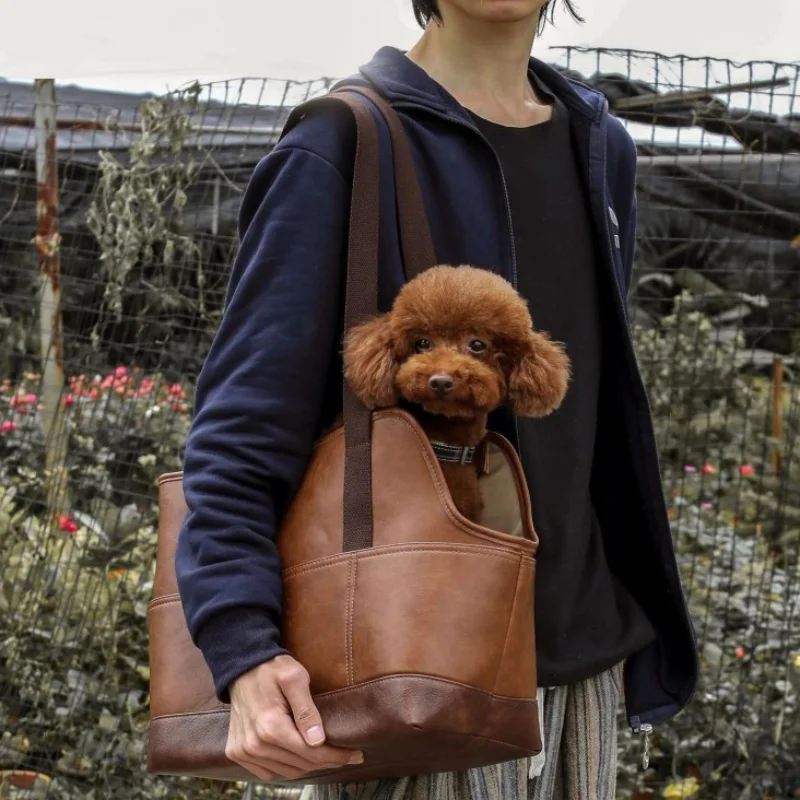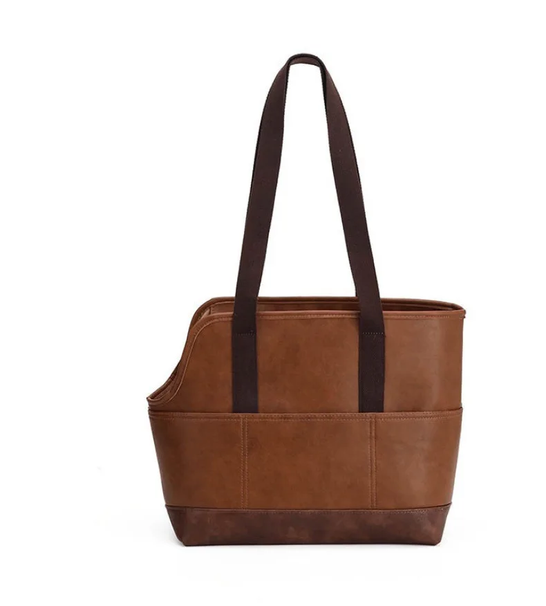 PU leather pet carrier bag soft sided pet carrier outdoor cat tote bag car pet bag brown portable pet carrier gray
