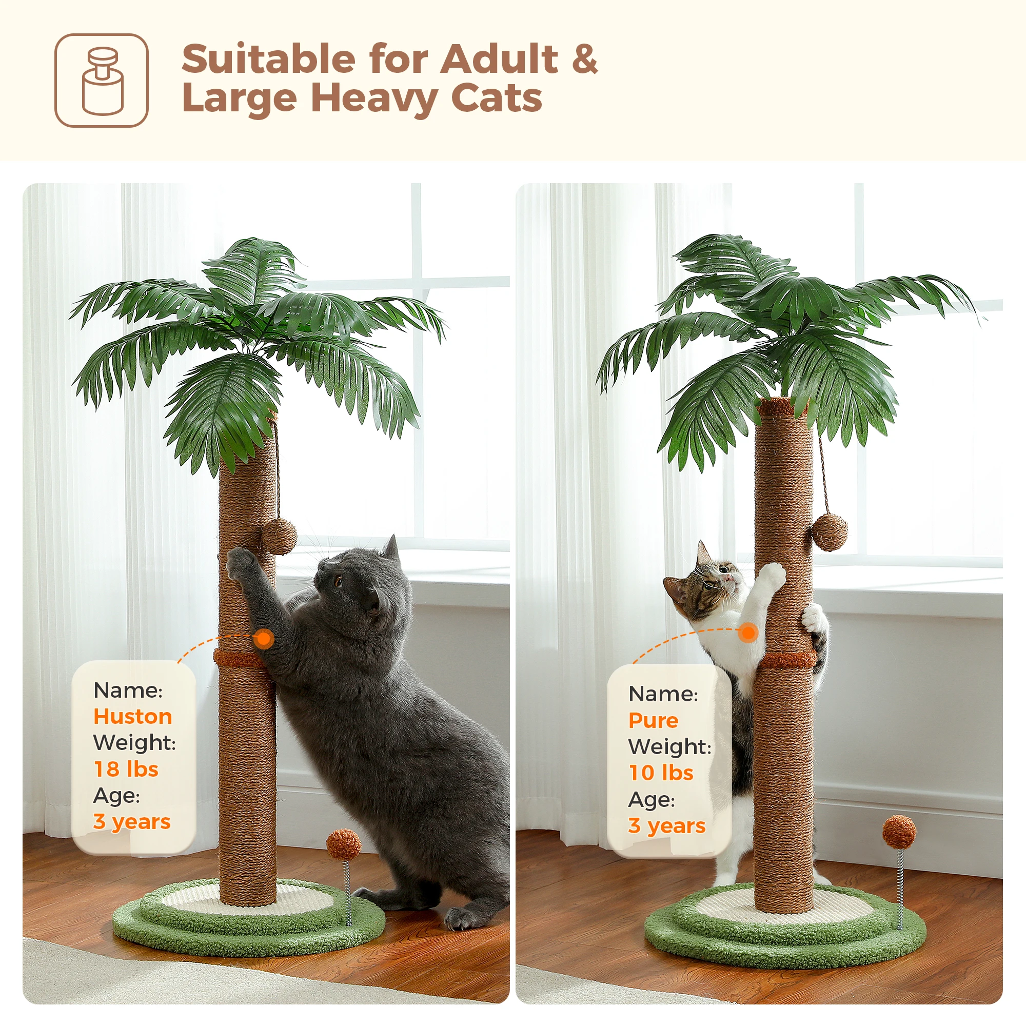 4. Column body is wrapped with natural sisal rope, wear-resistant, scratch-resistant and not easy to break.