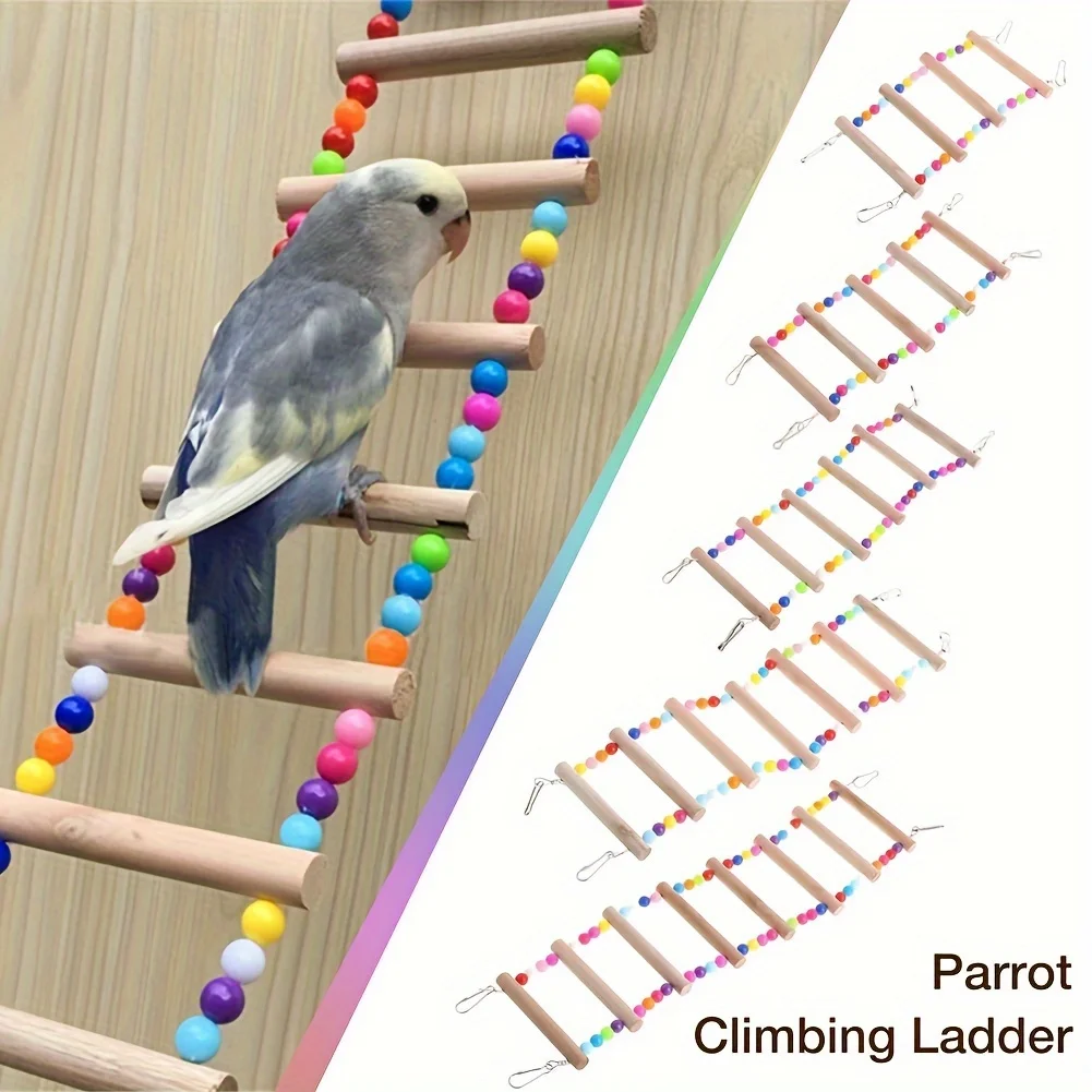 Puente de escalera para pájaros, columpio de escalada de 4/5/6/7/8 escalones, anillo colgante, accesorio para masticar y escalar para pájaros pequeños a medianos, juguete para loros