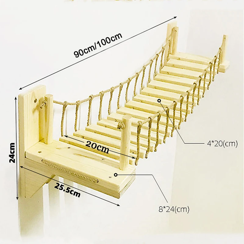 La longitud estándar de este puente es de 90/100 cm (35,43/39,37 pulgadas).También podemos personalizar la longitud de este puente de cuerda según las necesidades del cliente.¡Soporte al por mayor!!Si es necesario, póngase en contacto con el servicio de atención al cliente