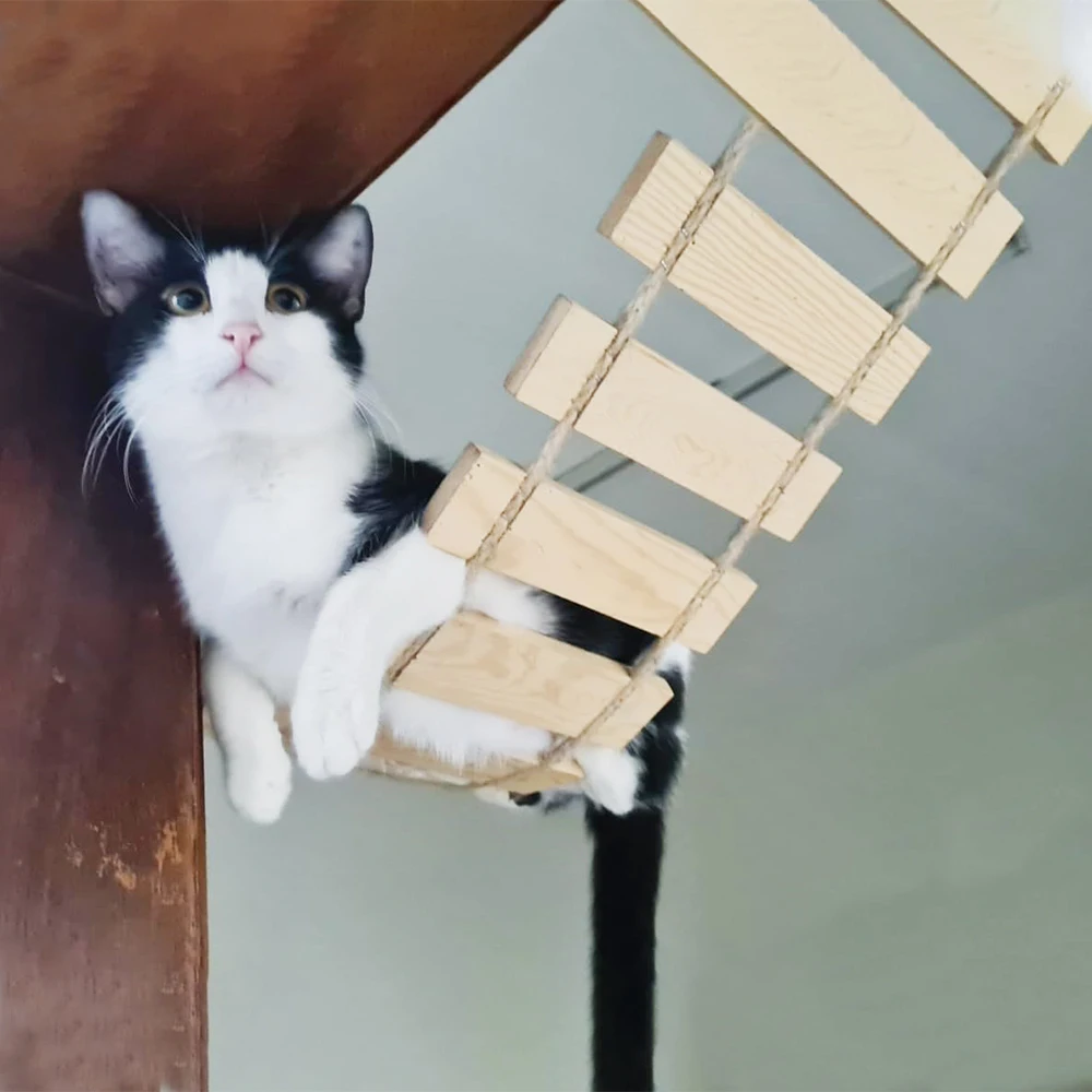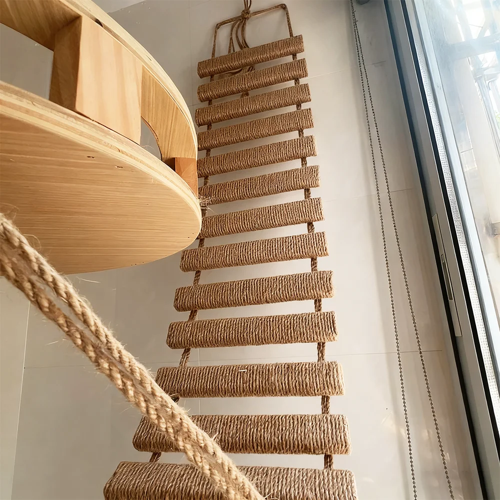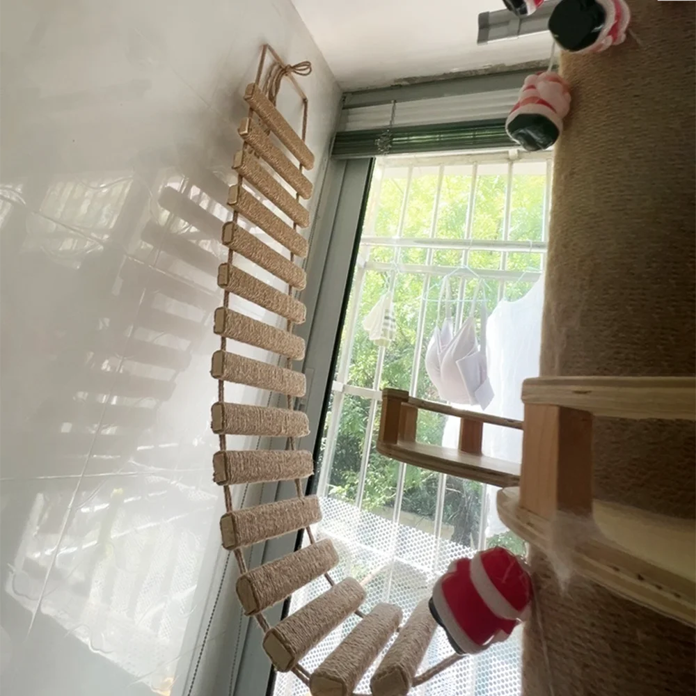 Funcionalidad versátil: esta escalera de cuerda para gatos también funciona como escalera, puente o plataforma, satisfaciendo las necesidades de actividad y escalada de su gato y al mismo tiempo ofrece opciones de uso versátiles para diferentes entornos.