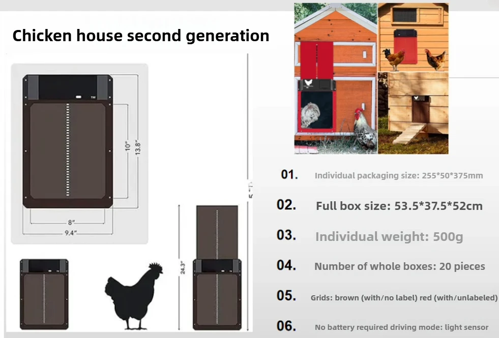 Puerta automática para gallinero con detección de luz para el hogar, nido de pollo, puerta para mascotas, productos para mascotas