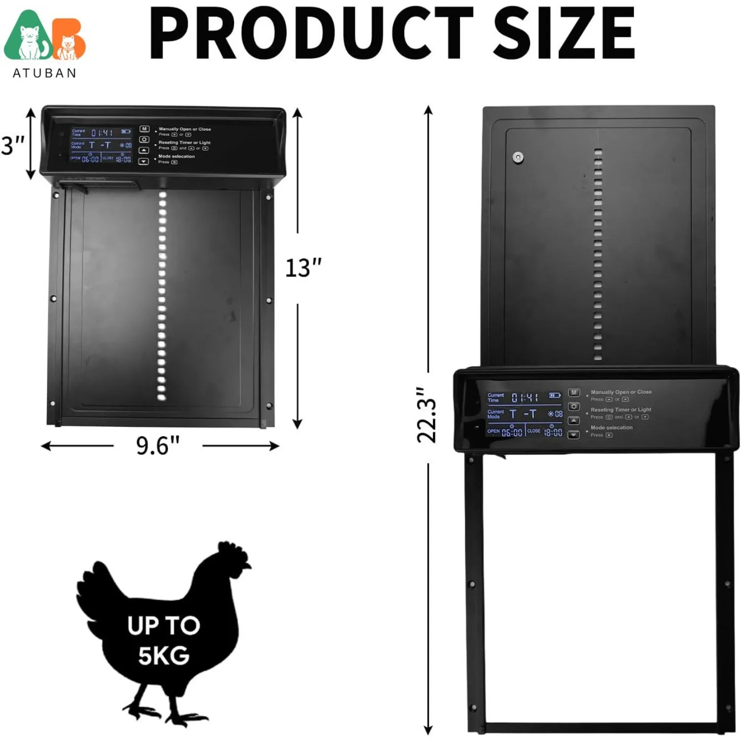 Pantalla LCD independiente, todos los parámetros son claramente visibles, la puerta del gallinero no necesita ensamblaje ni cableado complicado, simplemente instálela en la posición correcta y estará lista para usar.