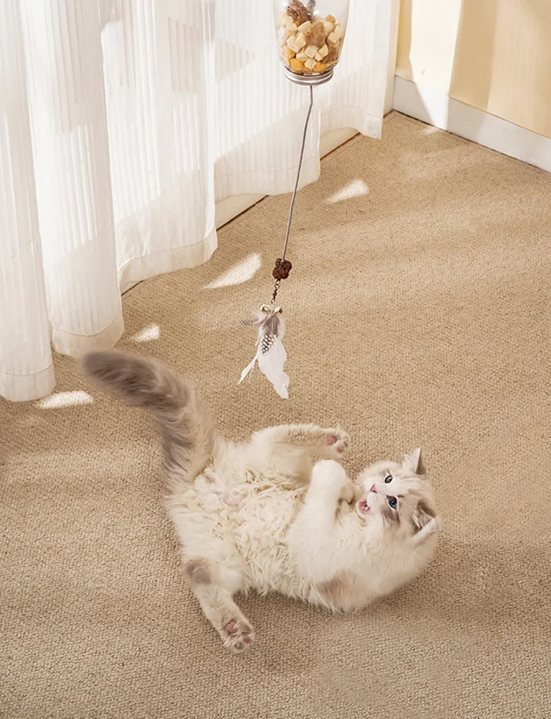 Material: plásticoTamaño: como muestran las imágenesColor: Gris-blancoEl paquete incluye: 1 juguete para gatos