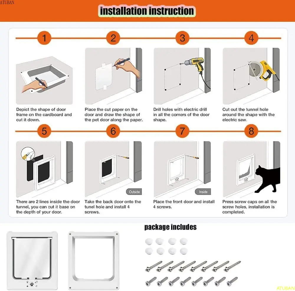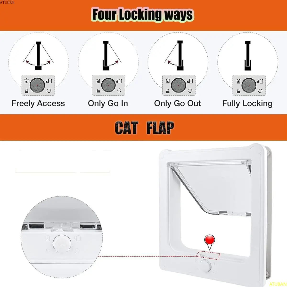 【Tamaño DE LA PUERTA DE gato】: Tamaño interior: 7,1x7,3 pulgadas (Ancho x Alto), tamaño del marco exterior: 9,25x10,8 pulgadas (ancho x alto), grosor: 2 ". Preste atención a la hora de medir el tamaño de su mascota.