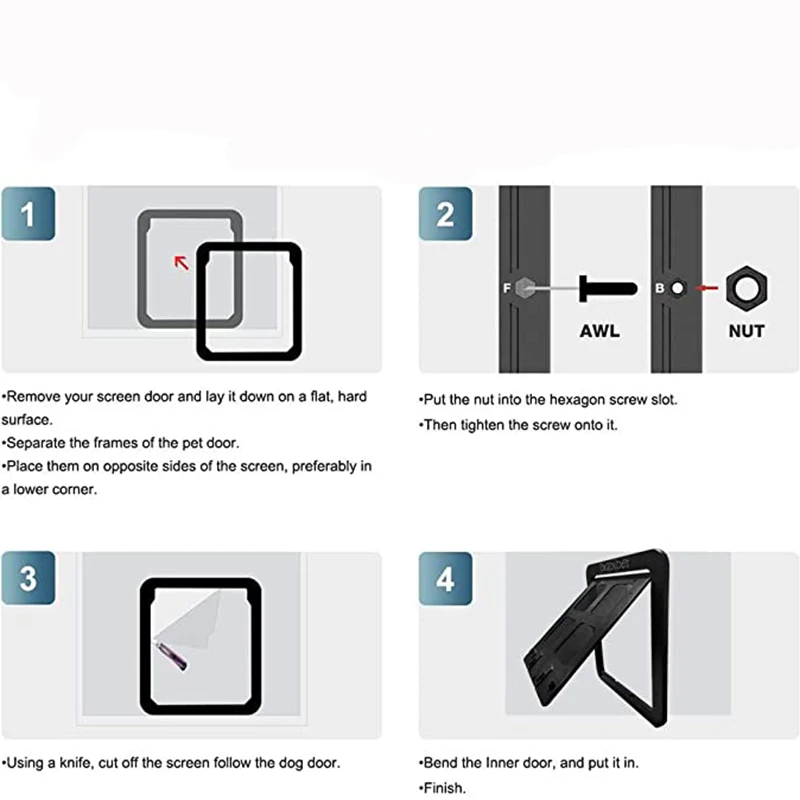 Aviso: el tamaño del marco exterior de la puerta para perros tamaño L es 43X37CM y el tamaño del marco interior es 37X31CM.