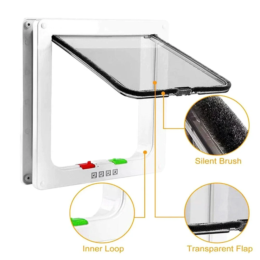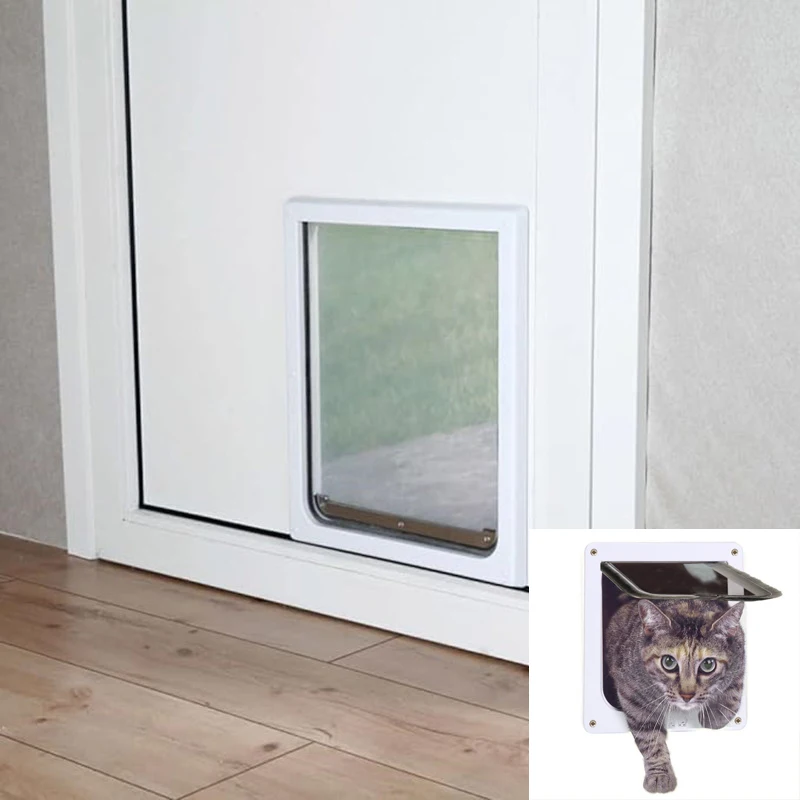 Puerta con solapa para gatos con cerradura de 4 vías, puerta con solapa de seguridad para perros, gatos, gatitos, puerta pequeña para mascotas, Kit de puerta de seguridad para gatos y cachorros
