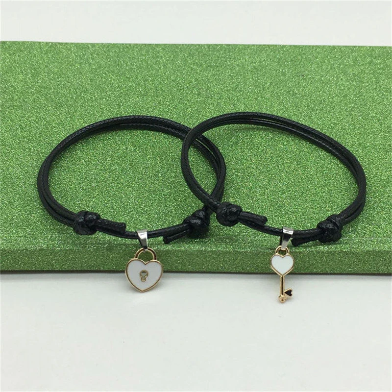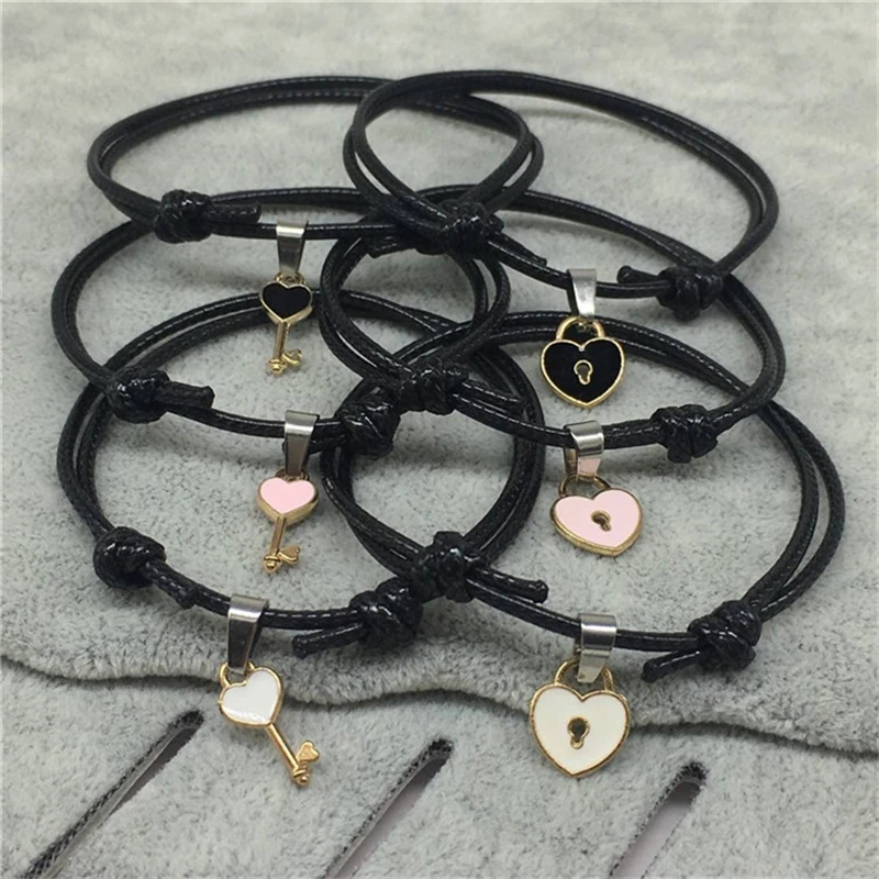 Pulsera minimalista con llave esmaltada para pareja, brazalete de cuerda de cera ajustable con cierre de amor, accesorio Unisex para hombre y mujer, 2 unidades por juego