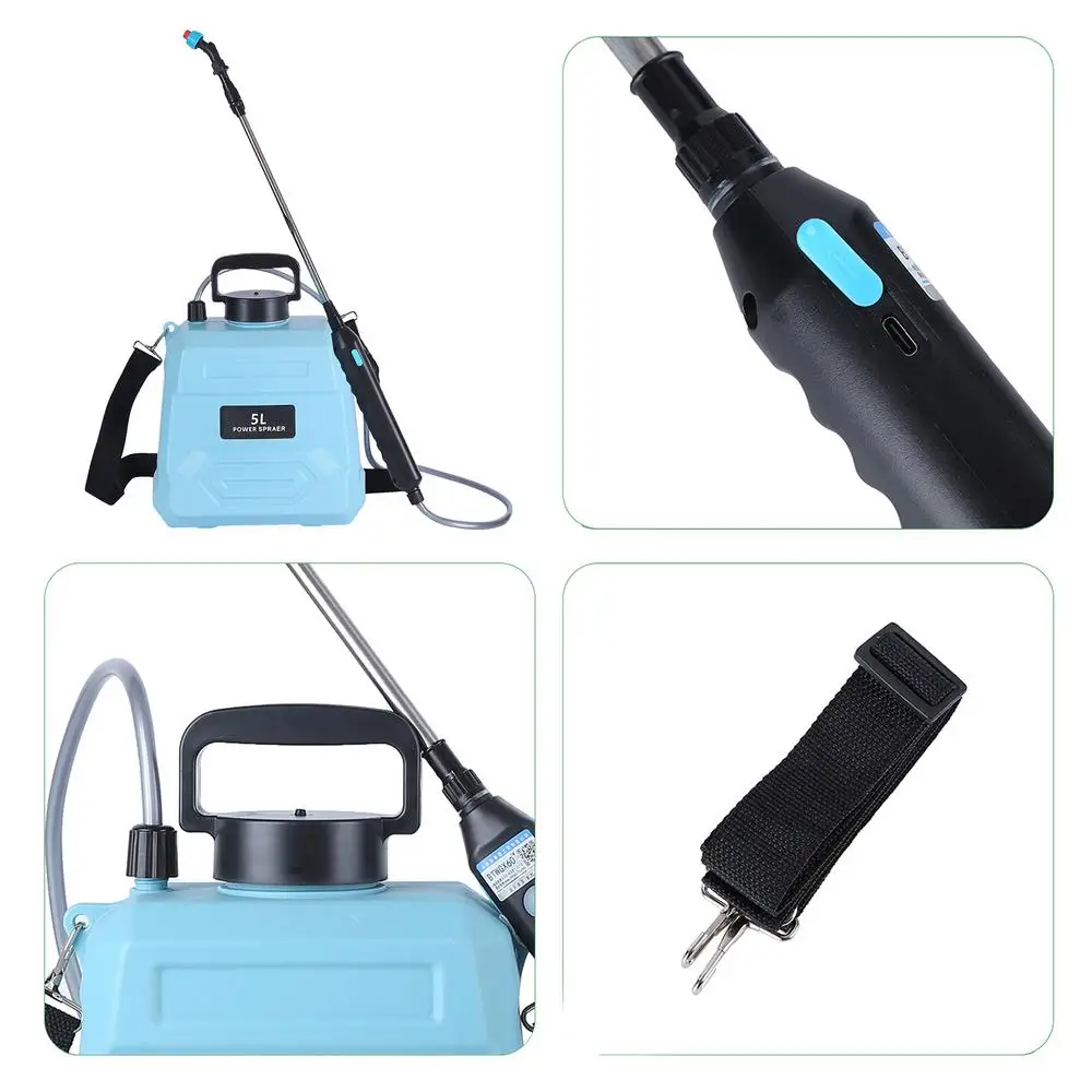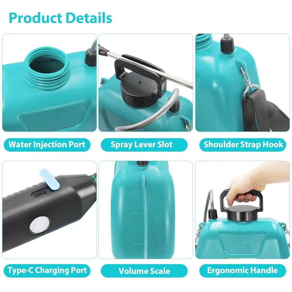 4. Movilidad conveniente: con una correa de hombro ajustable y de alta calidad y un mango ergonómico, nuestro rociador eléctrico garantiza una portabilidad cómoda y fácil para un uso prolongado en exteriores.