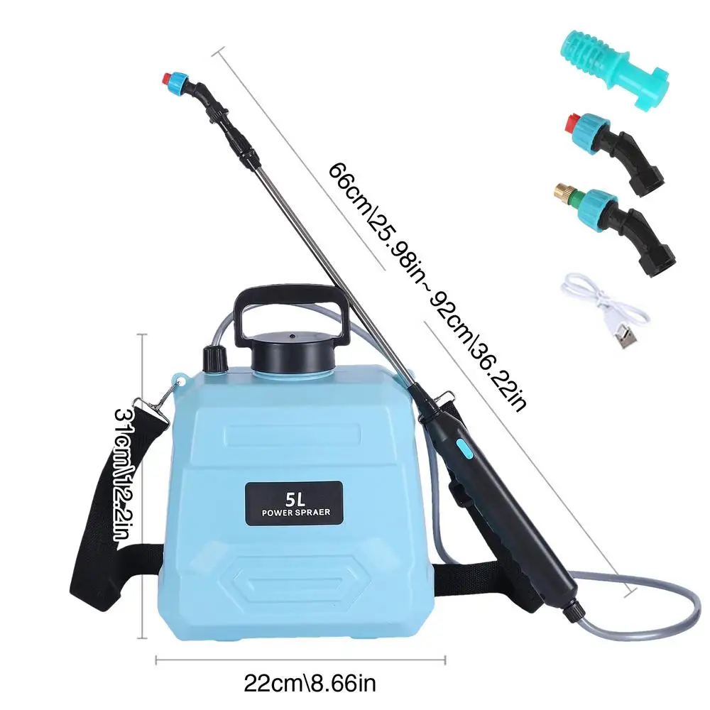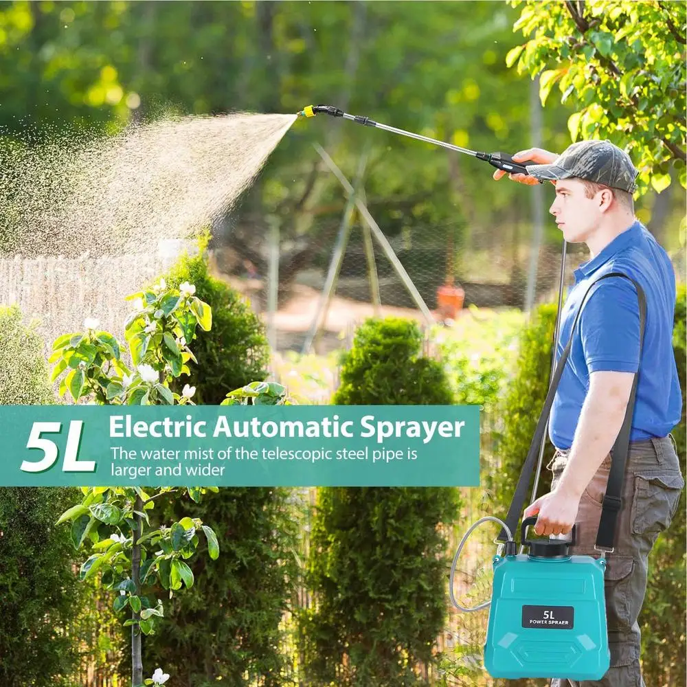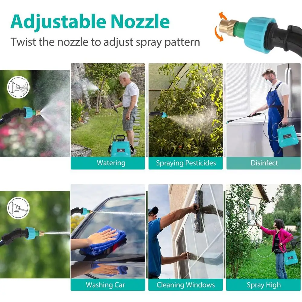 5. Amplia aplicación: satisfaga sus necesidades diarias con facilidad utilizando nuestro pulverizador eléctrico de 5 litros. Perfectamente diseñado para regar, rociar plantas, aplicar fertilizantes, herbicidas, limpieza del hogar y más. Una solución eficiente para uso en interiores y exteriores.