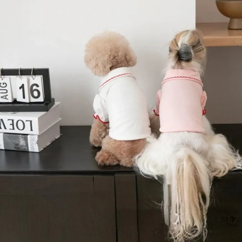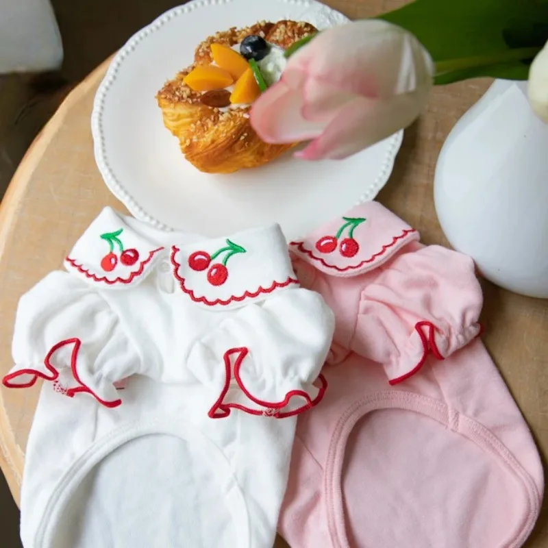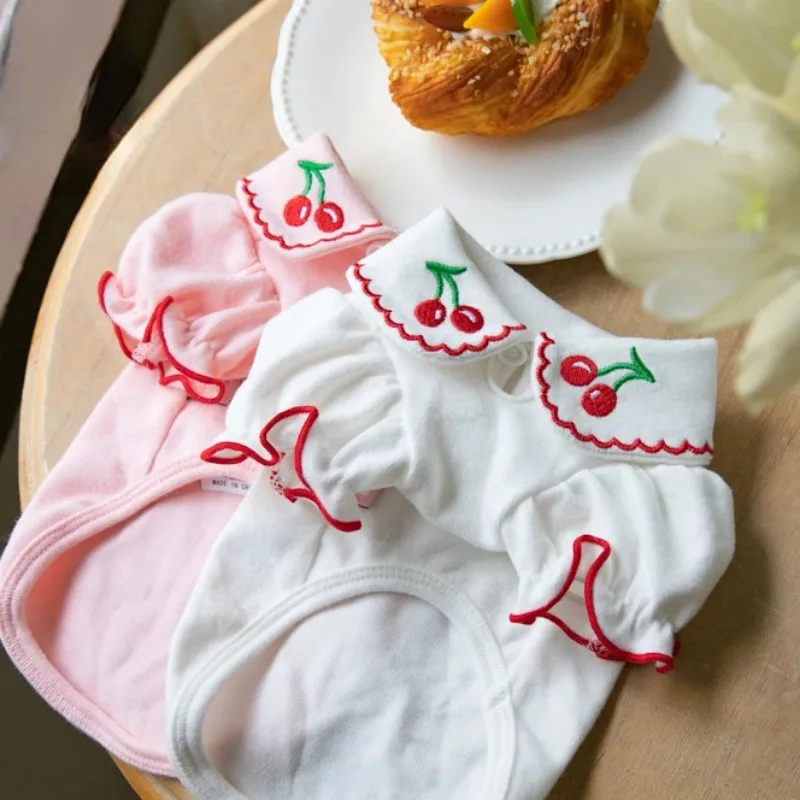 Puppy Cherry Shirt Wave Edge Bubble Sleeve Top Pet Clothes Dogs Clothing Teddy Bears Coat Dog T-Shirt Cute Puppy Clothes