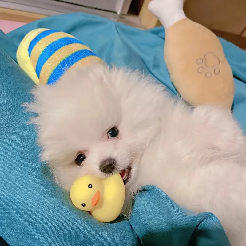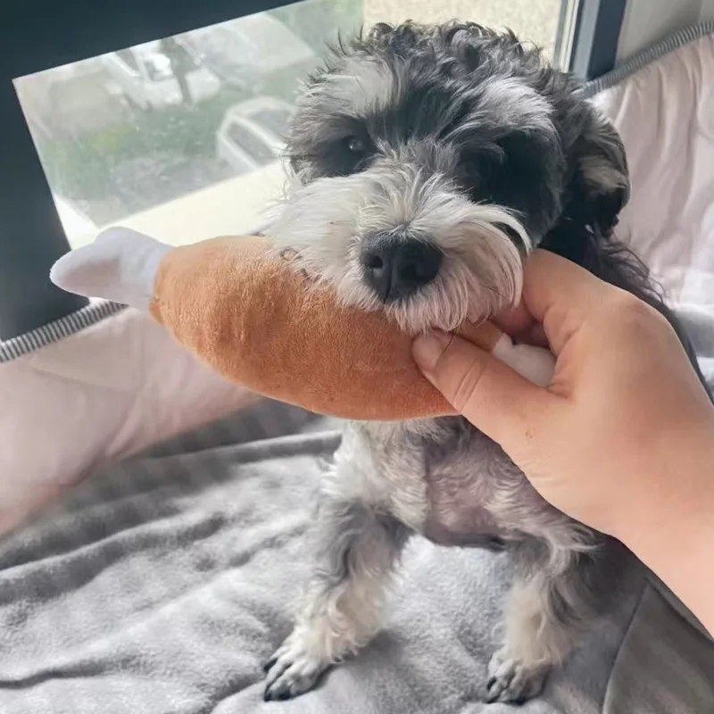 A mi perro le encanta. Tiene el tamaño perfecto para llevar. le gusta amamantar y chirría. Altamente recomendado para que jueguen los perros.