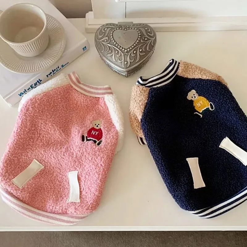 Puppy Pet Baseball Clothes Dog Jackets Winter Hoodie Pomeranian Warm Two Foot Clothing Teddy Soft Pullover Cute Pet Dog Clothes
