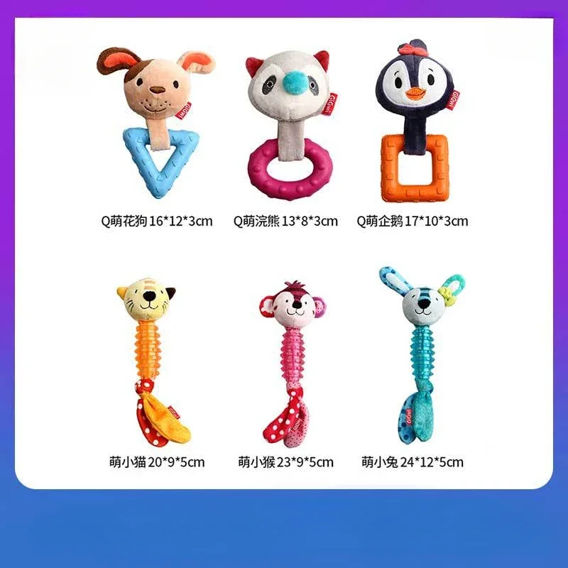 Q lindo juguete de conejo para perro, flor de goma de felpa, perro mapache, pingüino, dientes de molienda vocales, juguete para mascotas
