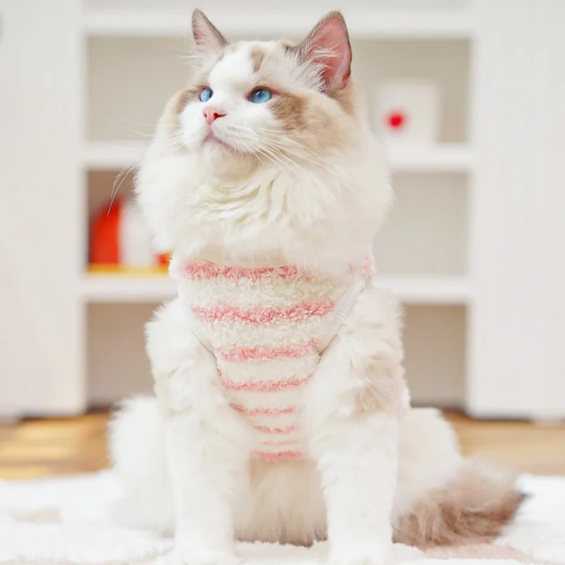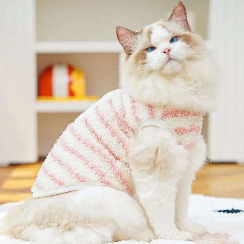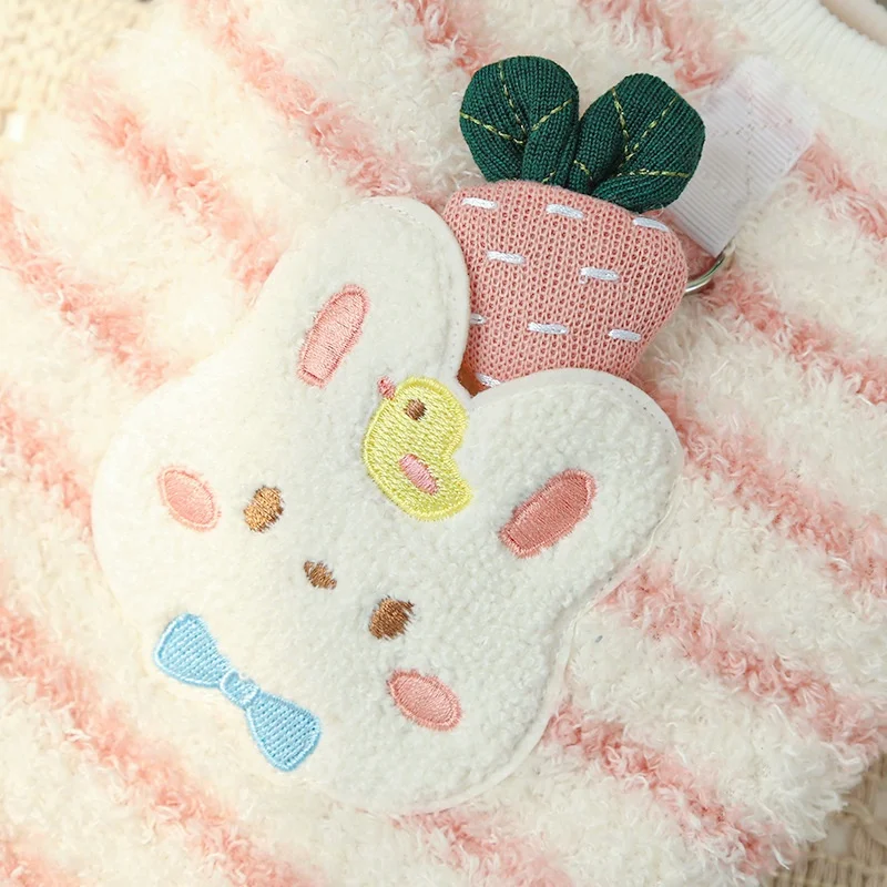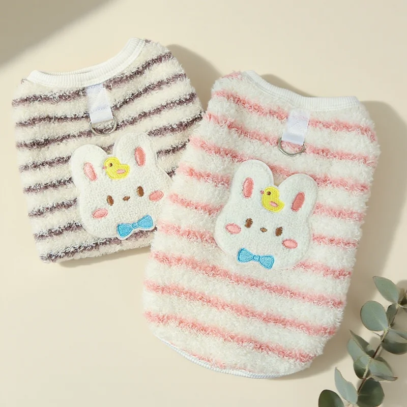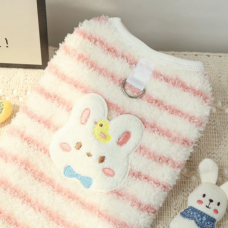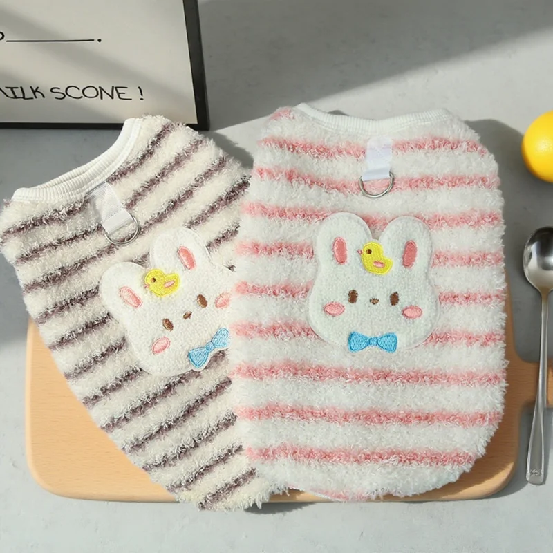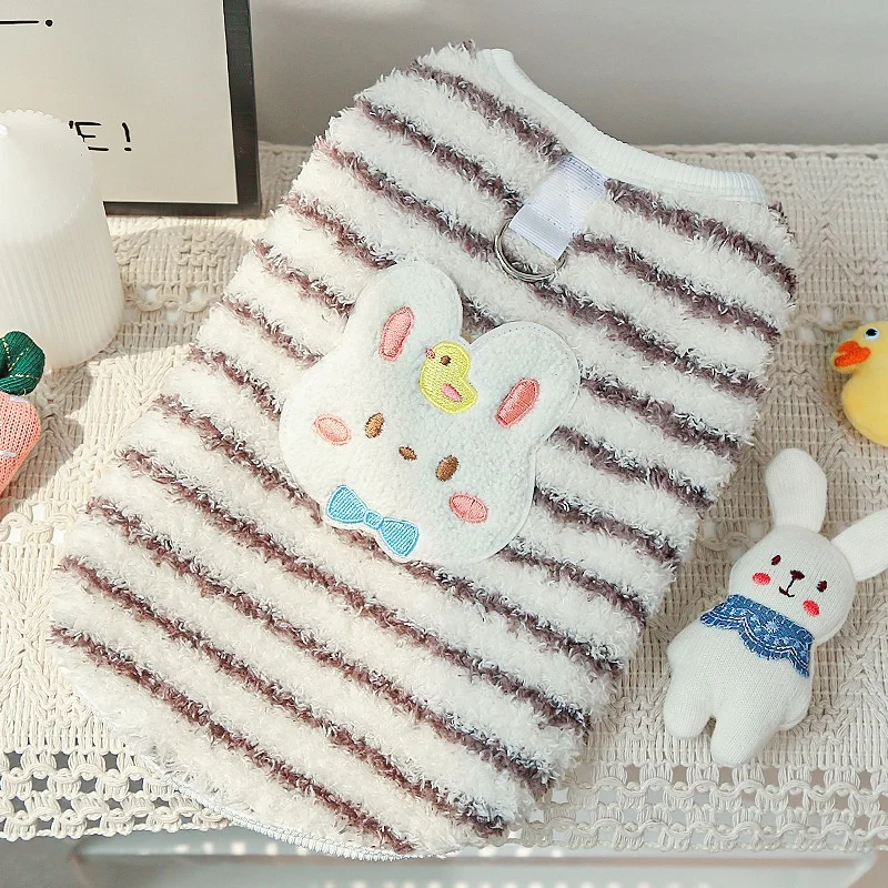 Chaleco con diseño de conejo para perro, ropa de invierno de lana para perro, chaleco suave y cálido para cachorro, jerseys con capucha de gato a rayas bonitas, jerseys para mascotas, disfraz