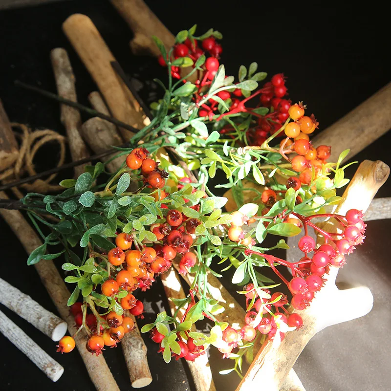 Rama de bayas artificiales, flor falsa, fruta de Navidad, baya pequeña, flores de espuma, decoración, boda, hogar, mesa, arreglo de plantas