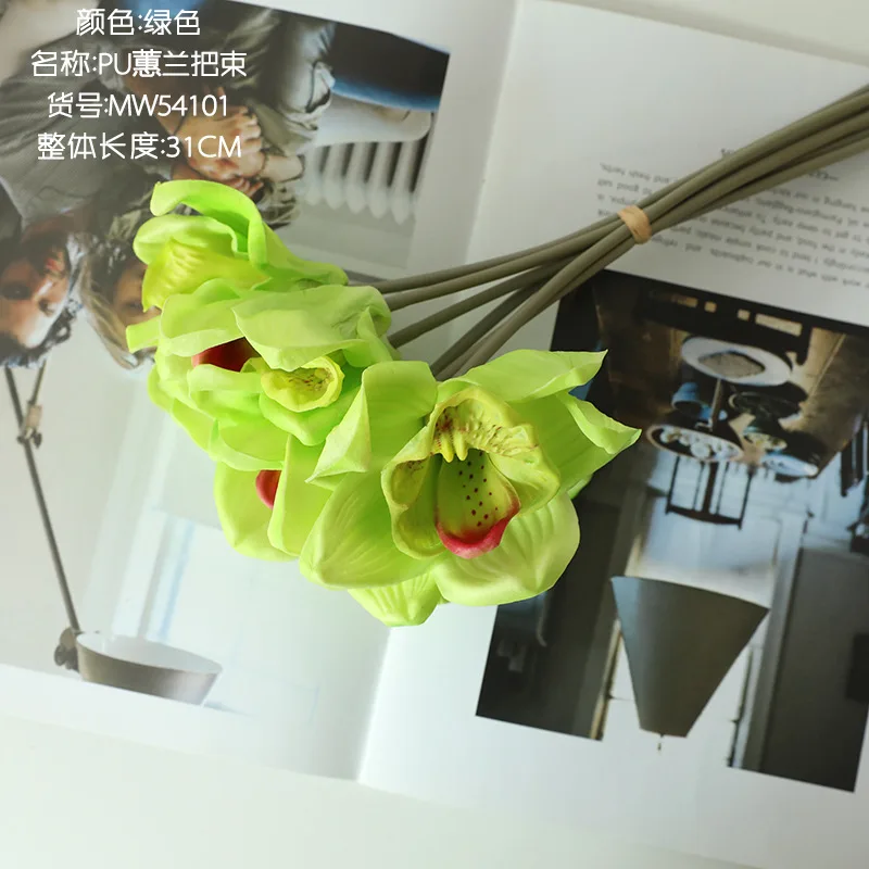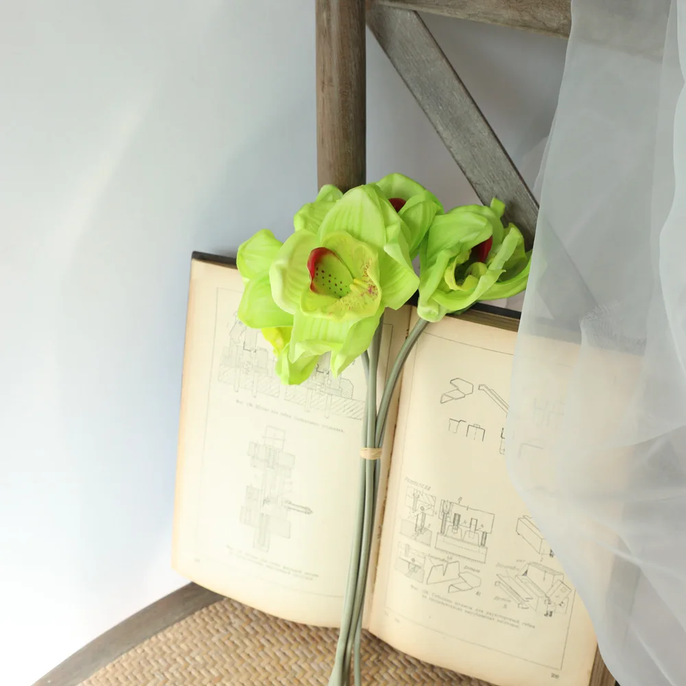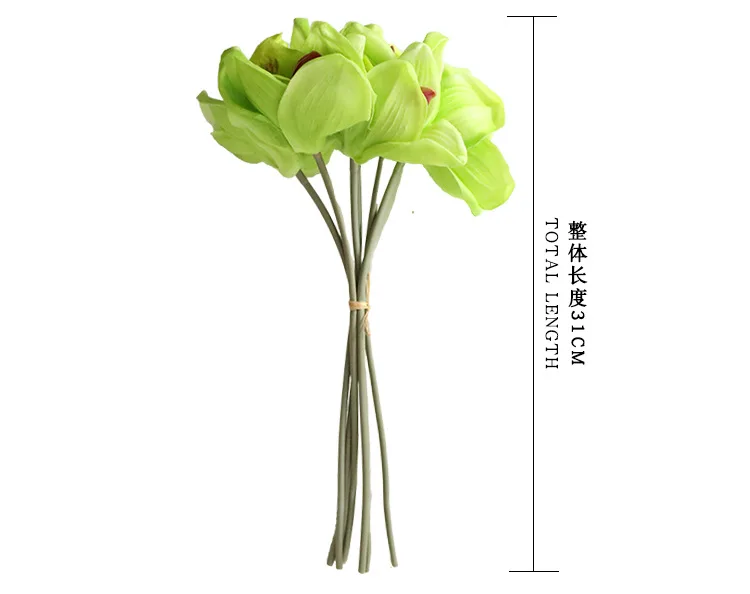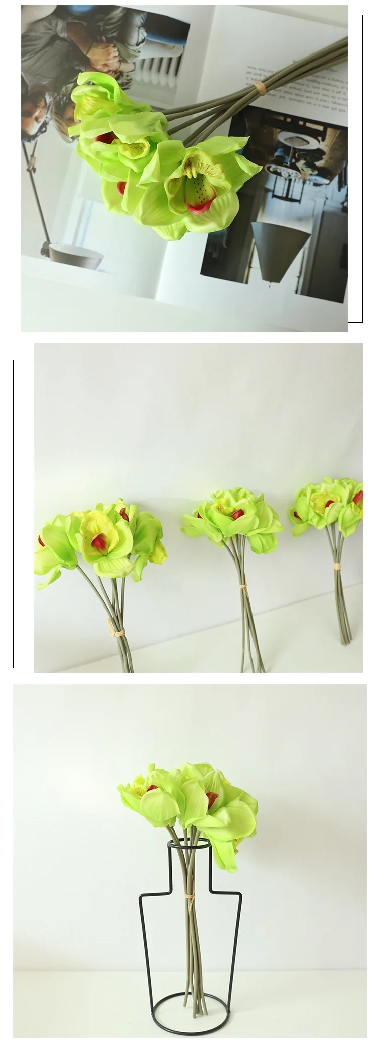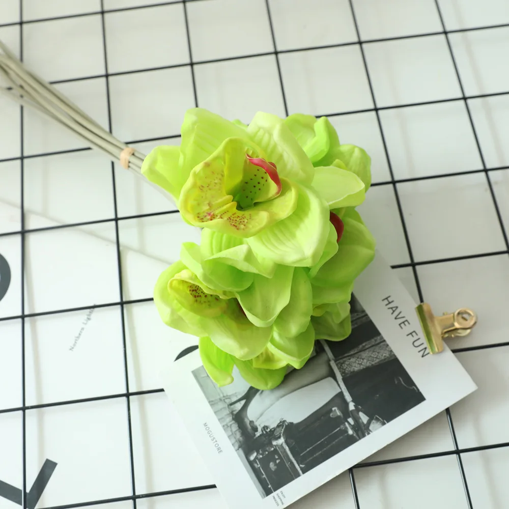 Ramo de flores artificiales de seda, flores artificiales de orquídeas verdes de alta calidad para decoración de bodas, hogar y Festival