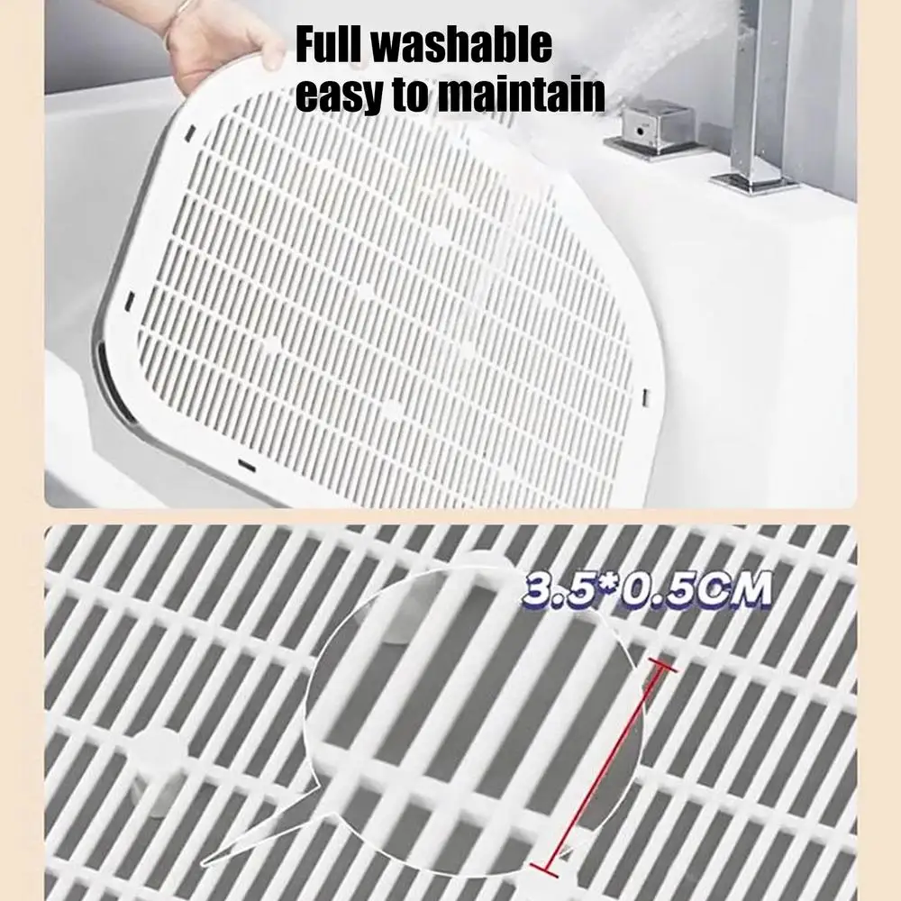 2. Tecnología para evitar derrames: diseñada con un diseño de ranura inteligente que atrapa derrames y minimiza las salpicaduras para mantener la limpieza cerca de la configuración de rampa de la caja de arena para gatos.