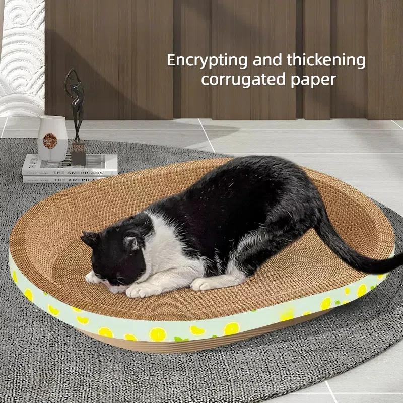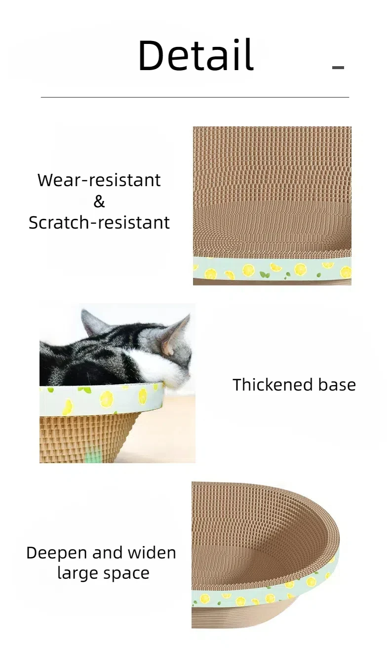 -** Construcción de cartón corrugado **: material resistente y ecológico que funciona como una almohadilla para rascar las garras de tu gato.