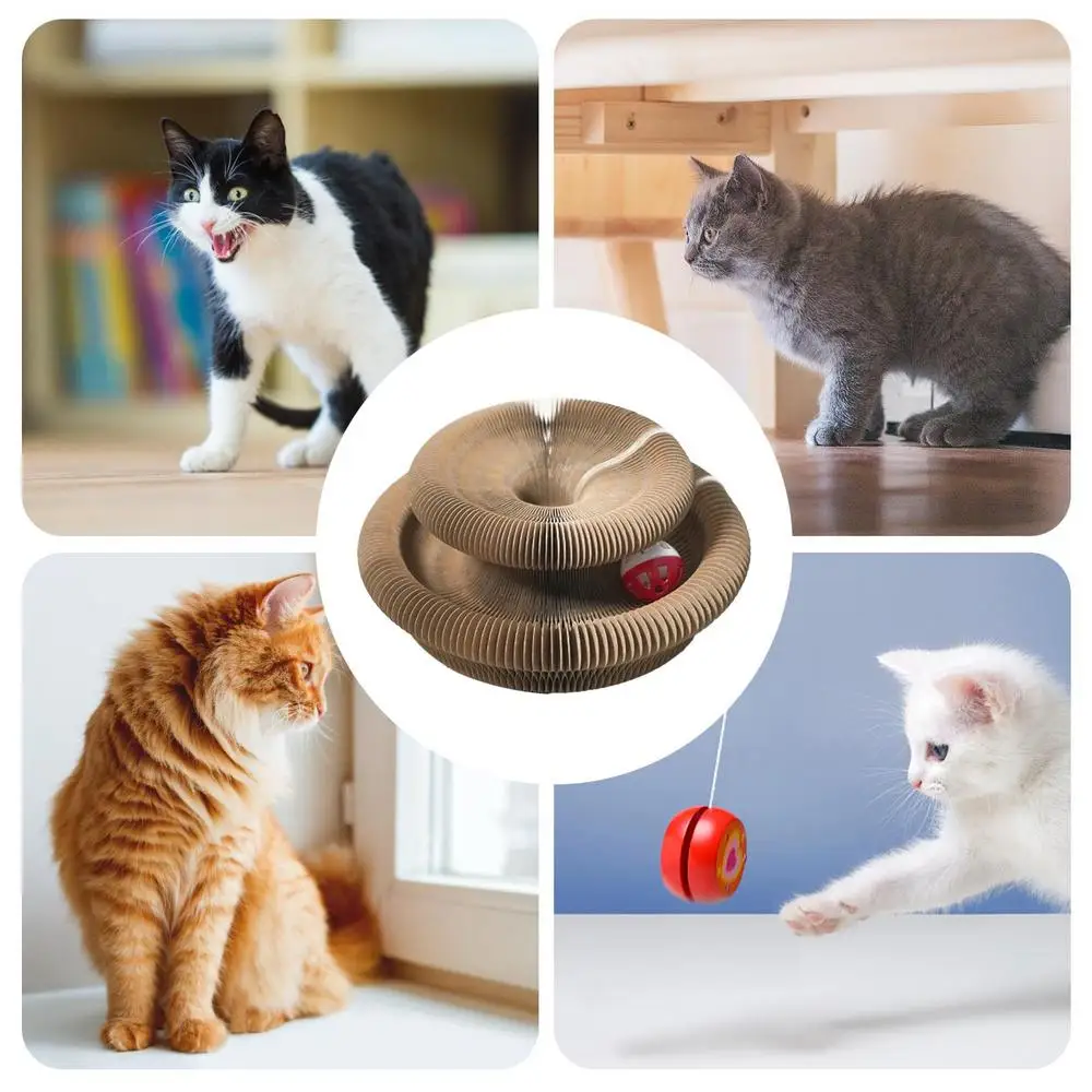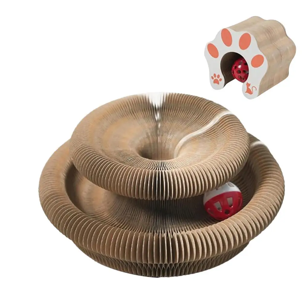 2.Interactive Playtime: The scratchboard comes with a toy ball and track for added excitement. Cats can run and scratch the ball while satisfying their instincts. Plus, the accordion design of the board protects your furniture from claw damage, making it a win-win for both you and your feline friend