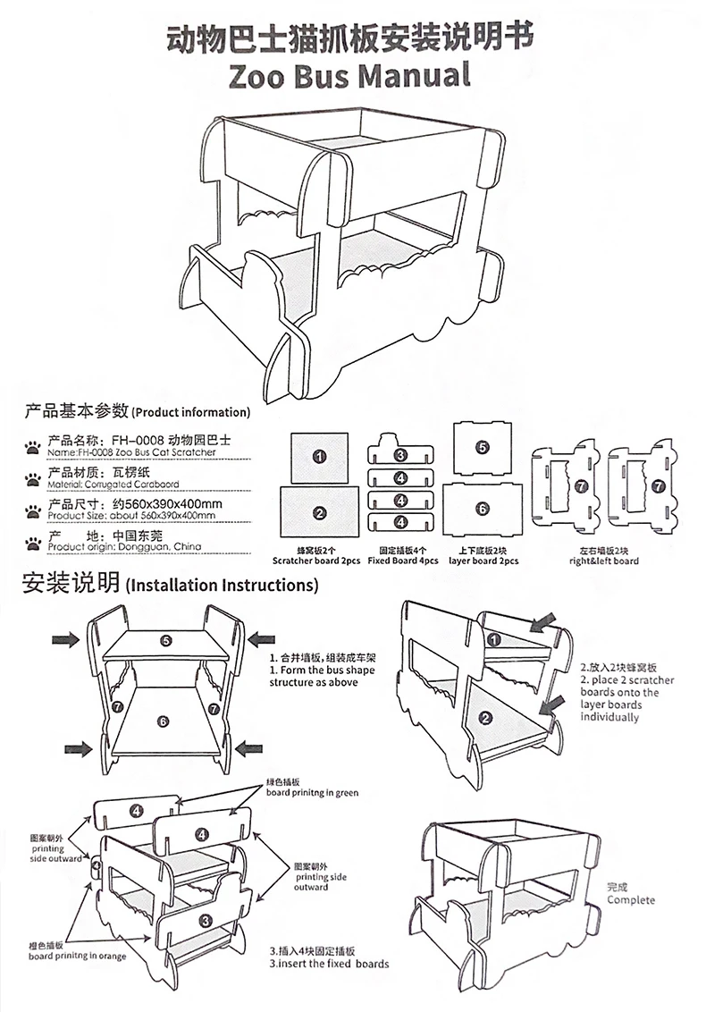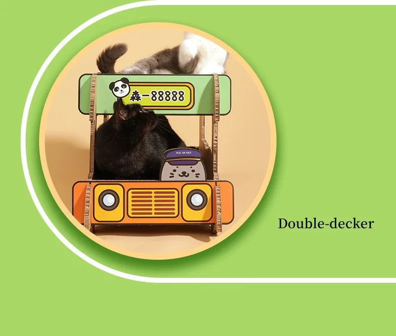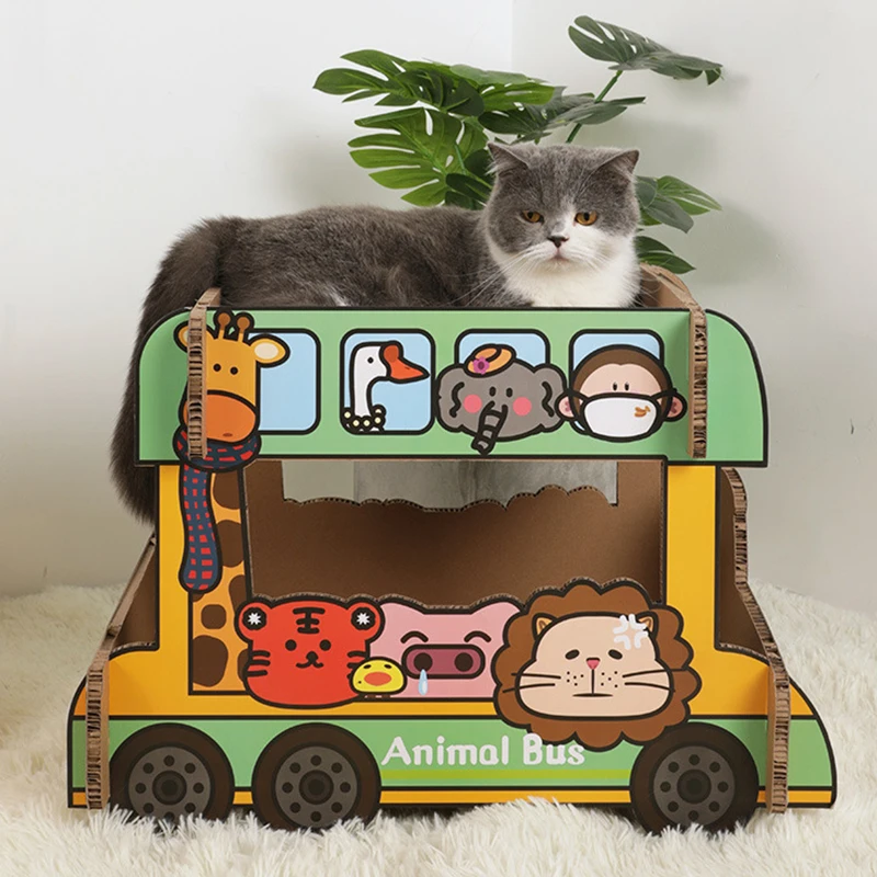 Rascador de gato de papel corrugado en forma de coche, cama Bund de doble cubierta, autobús de animales, suministros para mascotas