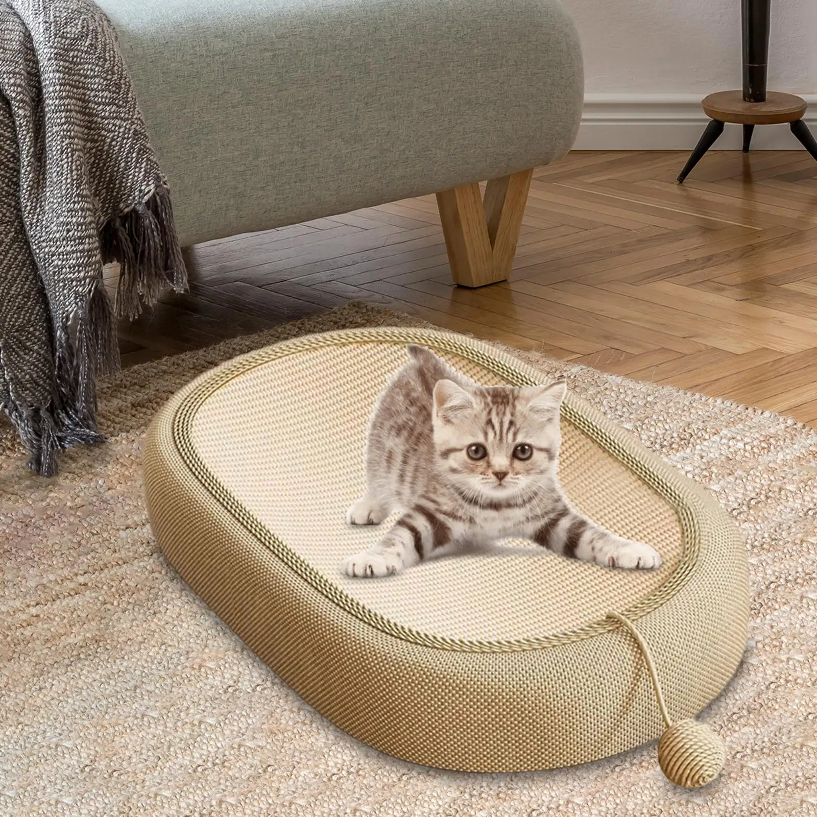 【Lounge Bed】: Cuenta con una forma ovalada que parece una cama para dormir, una cama para rascar, una pelota de juguete interactiva que llama la atención de su mascota, los gatos pueden acostarse en la almohadilla como una cama o un sofá.
