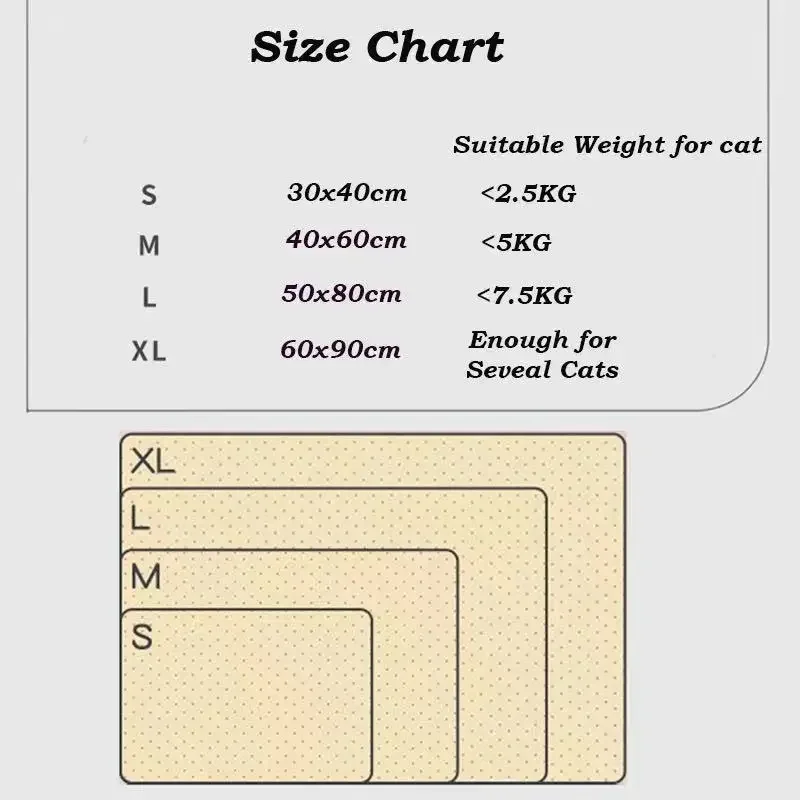 1. Este producto utiliza tres estilos de esterilla de sisal/esterilla de paja/alfombra para proteger las garras del gato de cualquier daño.2. Se puede enrollar vertical u horizontalmente, adecuado para diferentes patas de mesa.3. Se puede fijar en patas de sillas, patas de mesa y otros lugares para proteger los muebles de arañazos.4. Debido a que el color del sisal natural es aleatorio, el color del producto también lo es.Material: SisalTamaño:S: 30*40cm/11,8*15.74inM: 40*60CM/15,74*23,62 pulgadasL: 50*80cm/19,6*31.49 pulgadasVentajas: la alfombrilla de sisal es más duradera y cómoda de almacenar. Utilizado en múltiples lugaresLista de embalaje1 almohadilla para rascar gato